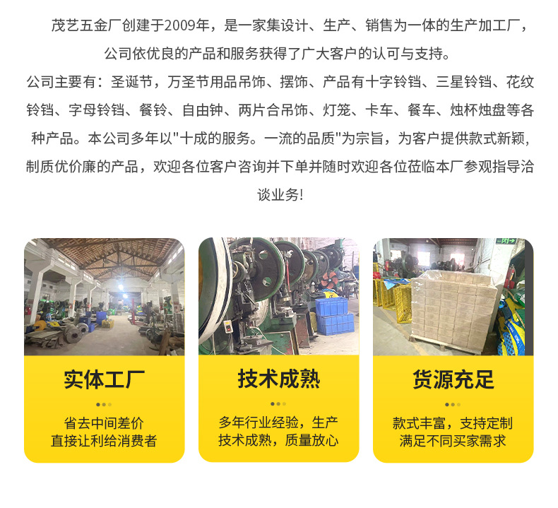 新款派对装饰用品牛铃 DIY金属工艺装饰圣诞铃铛方牛铃圆角铃铛