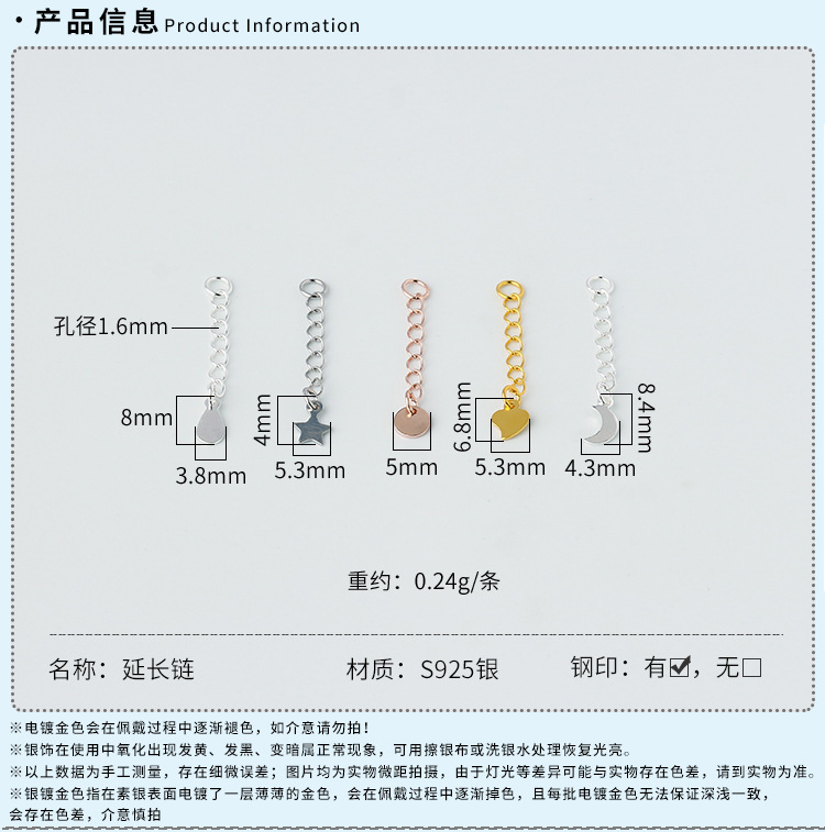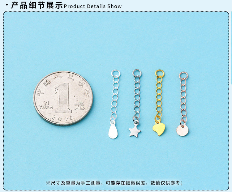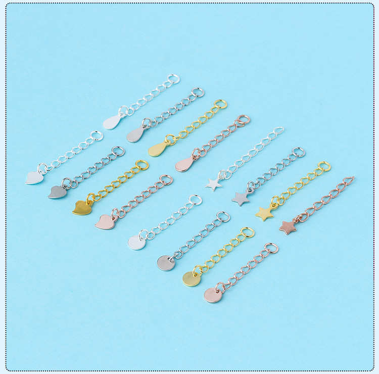 925银连接链子调节链条链尾材料diy手链项链加长心形水滴延长链