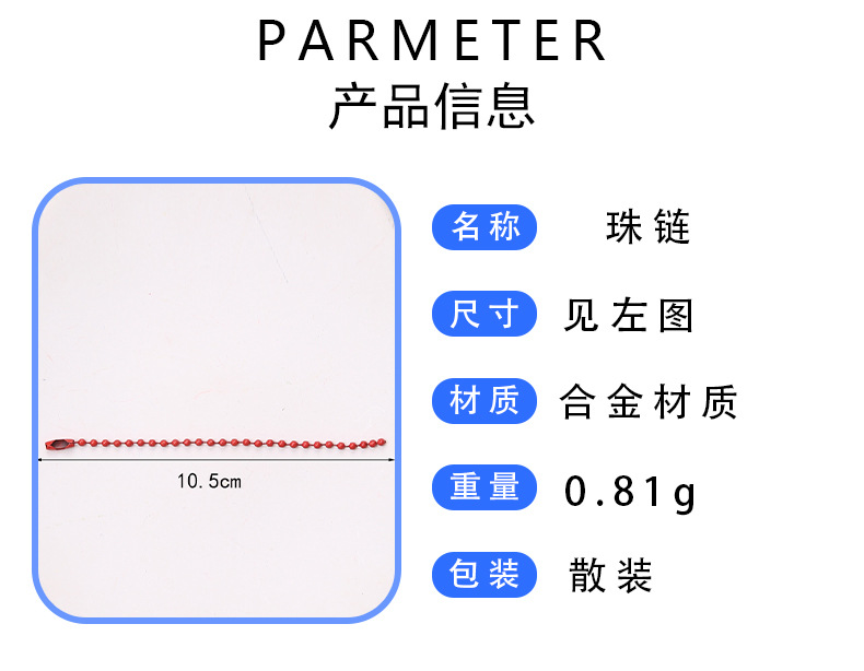 手工DIY饰品配件批发彩色珠链挂链金属烤漆波珠链钥匙扣链条配饰