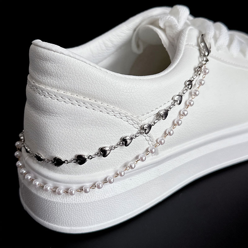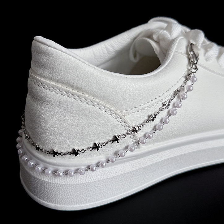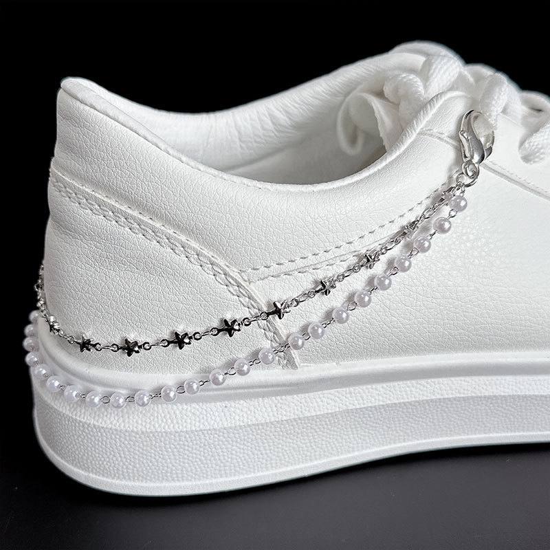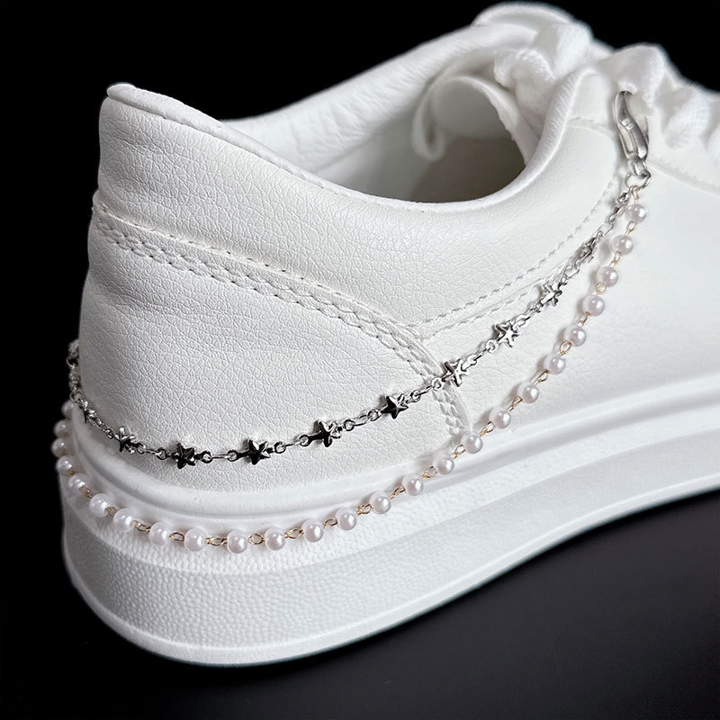 个性百搭星星爱心珍珠双层鞋链朋克嘻哈潮流配饰跨境热销配饰新款