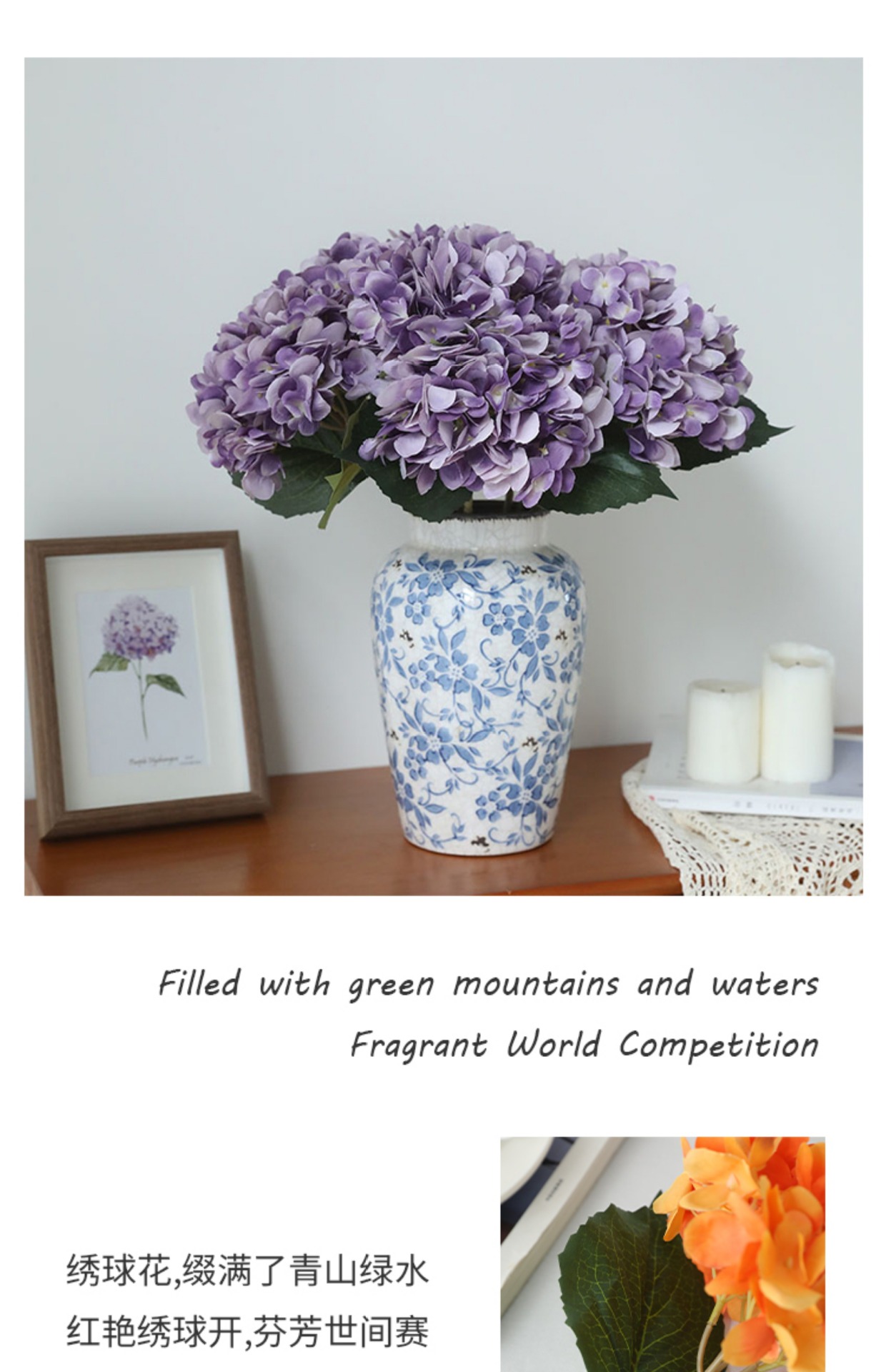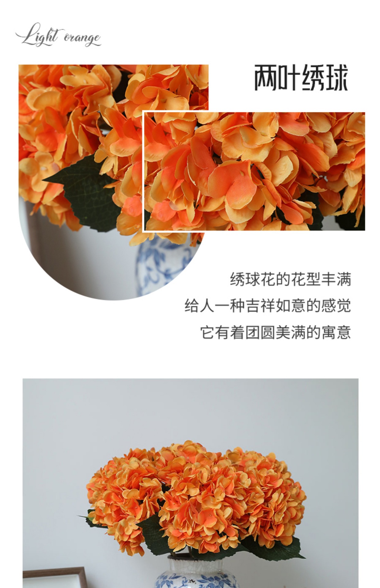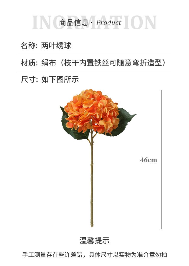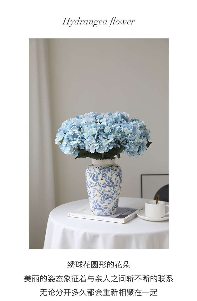 仿真绣球花单支两叶绣球花北欧风绣球仿真花婚庆路引手捧假花批发