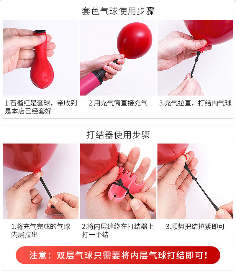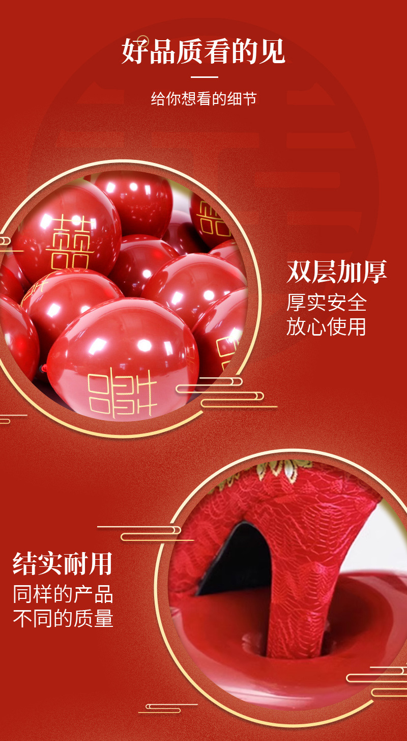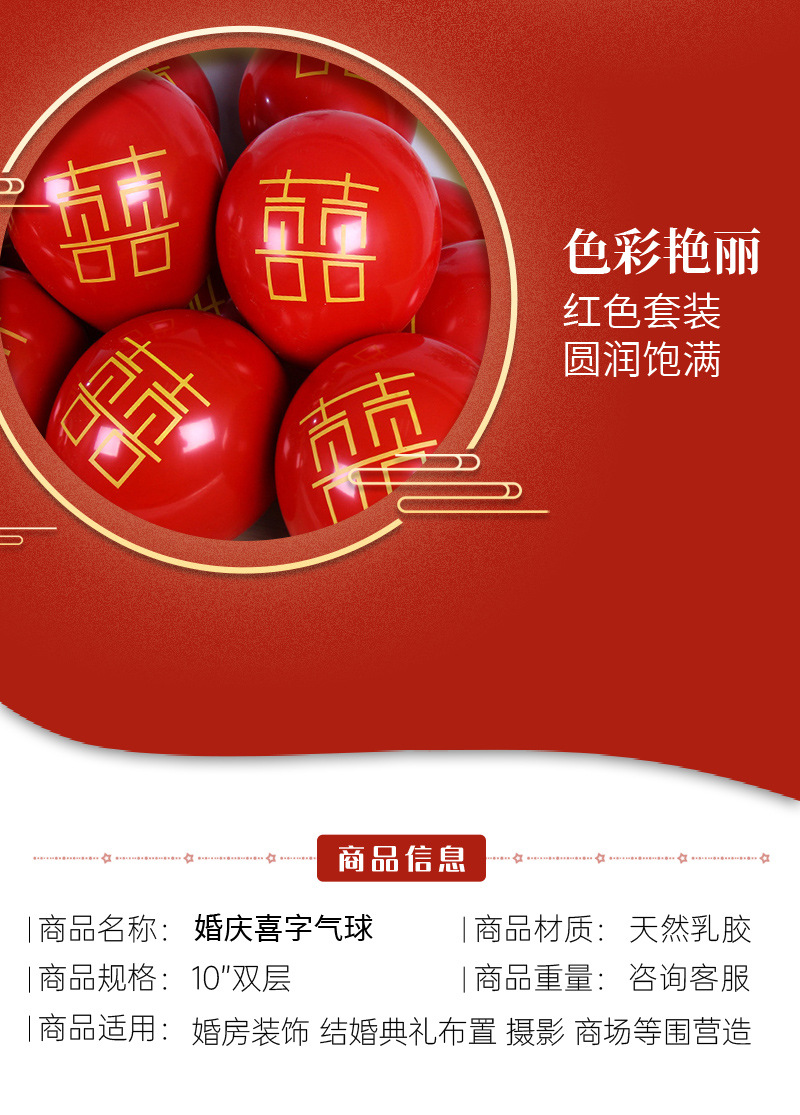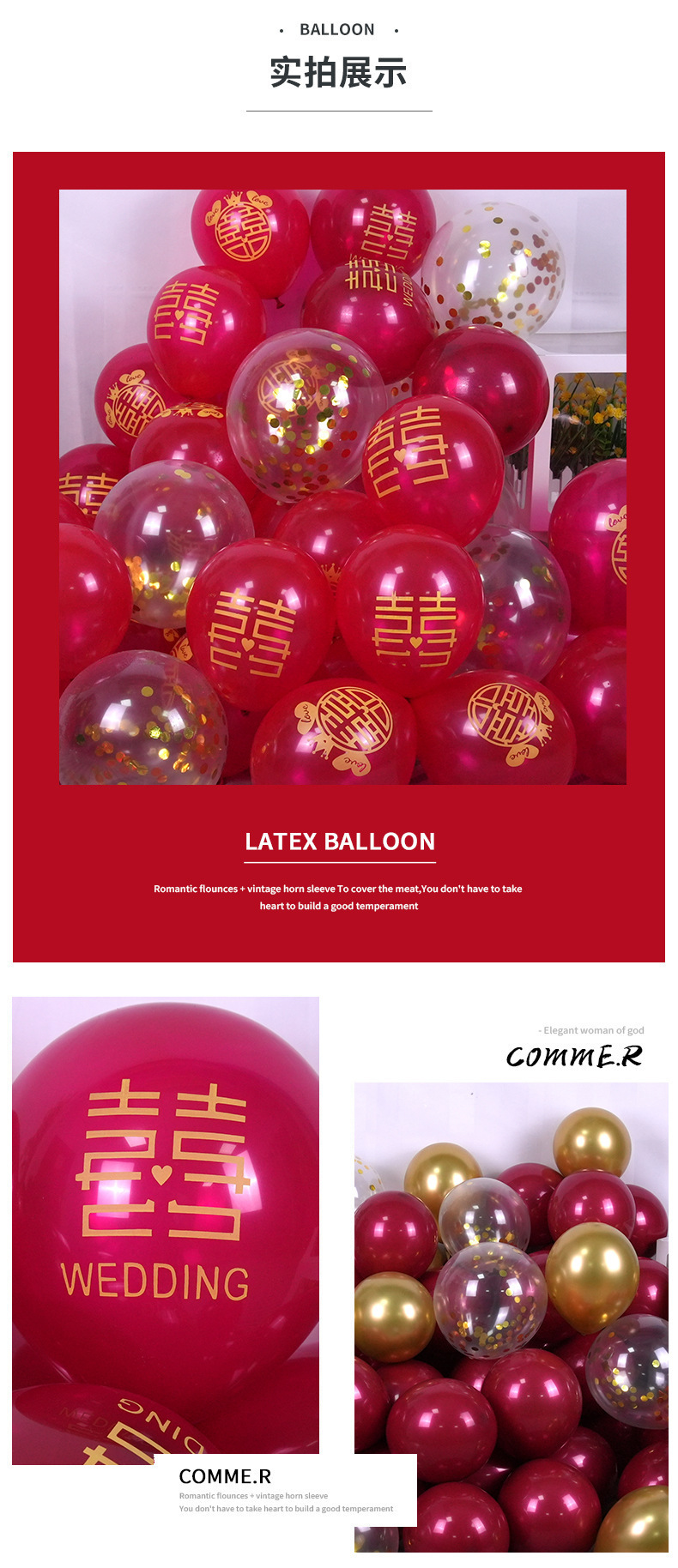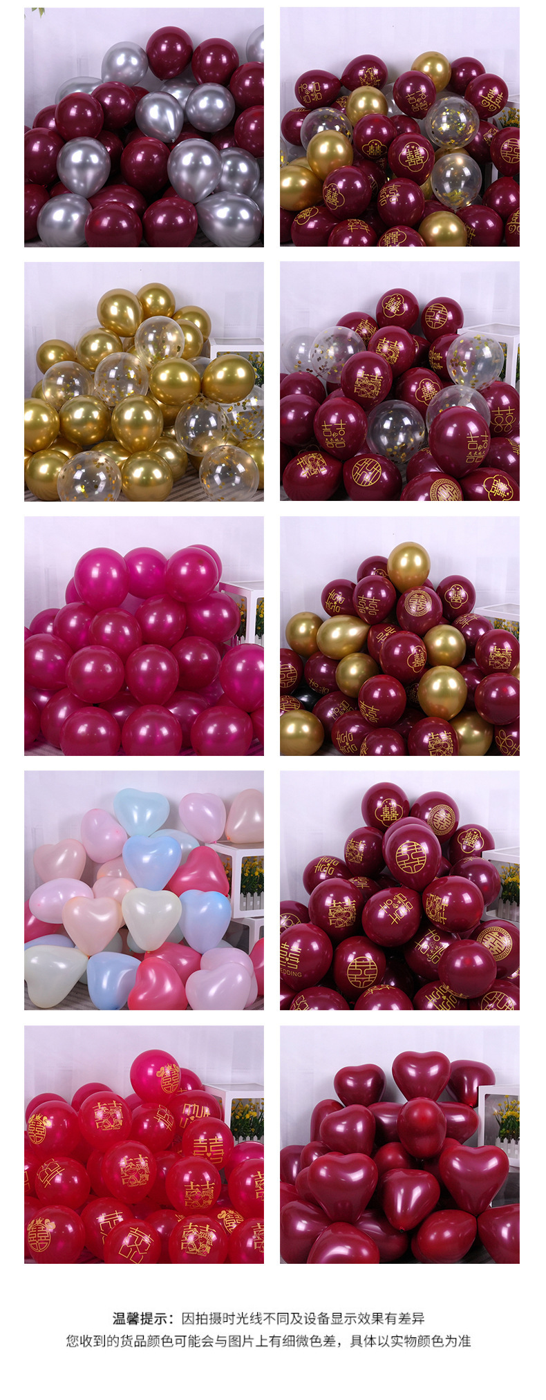 婚房布置气球结婚喜字气球10寸加厚双层石榴红气球婚礼装饰用品