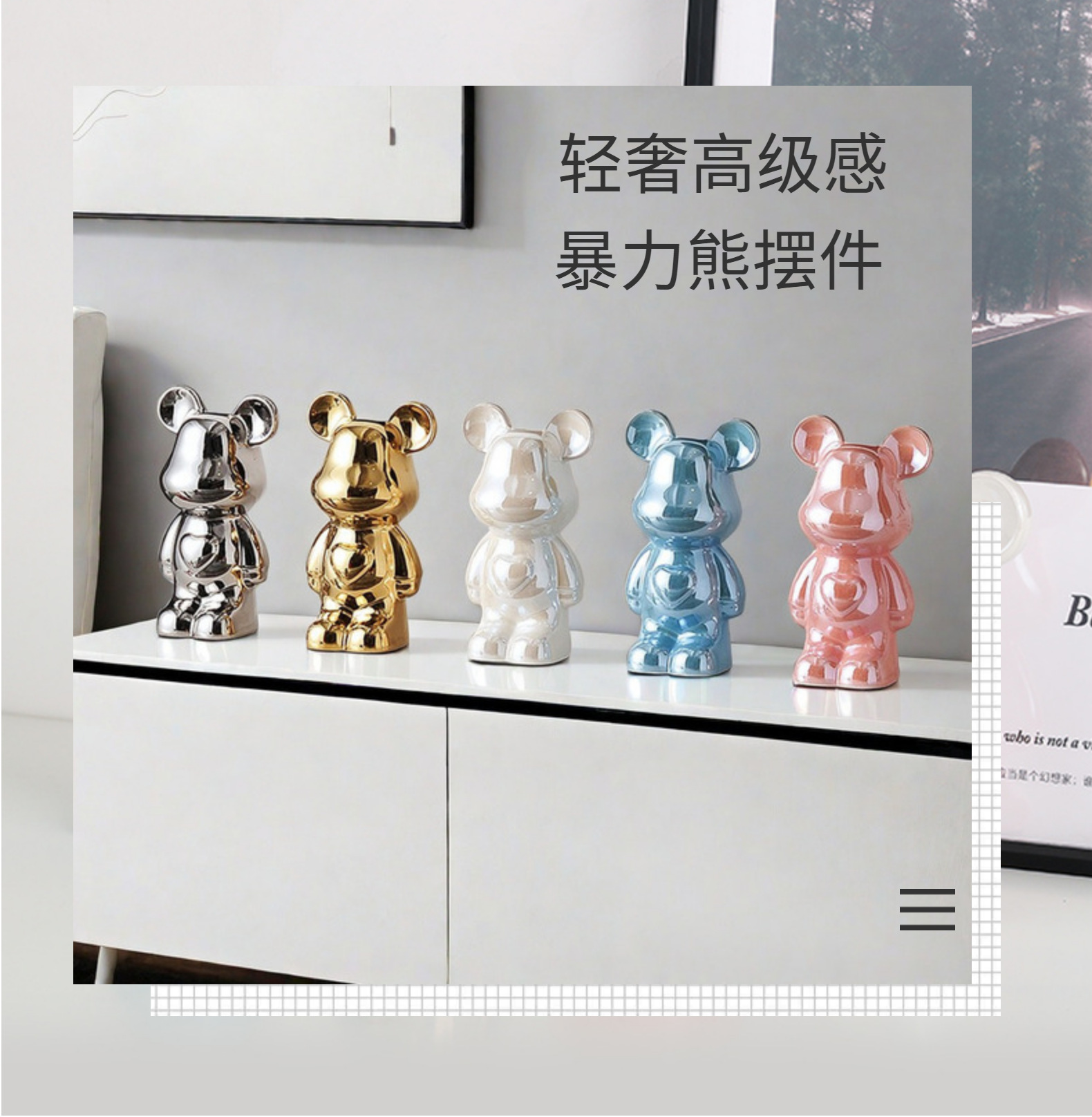整箱60只网红18cm电镀爱心熊存钱筒高级感陶瓷暴力熊摆件套圈用
