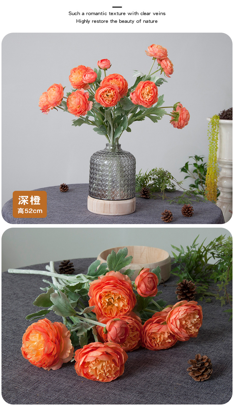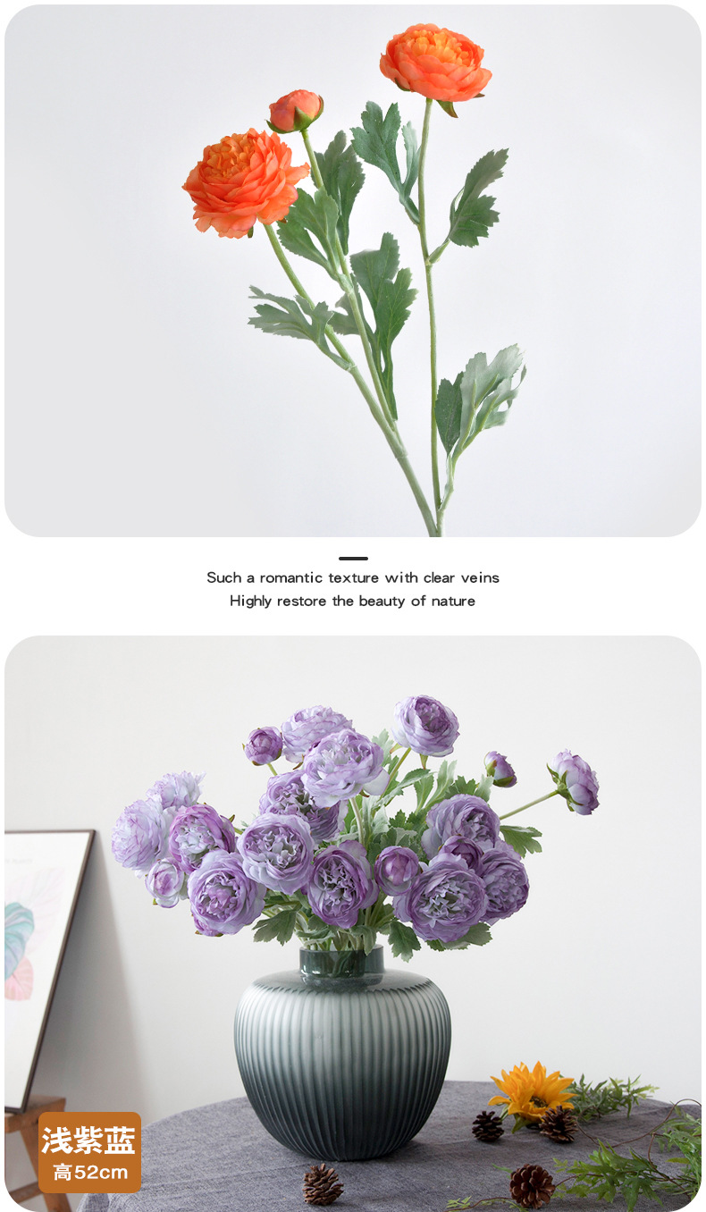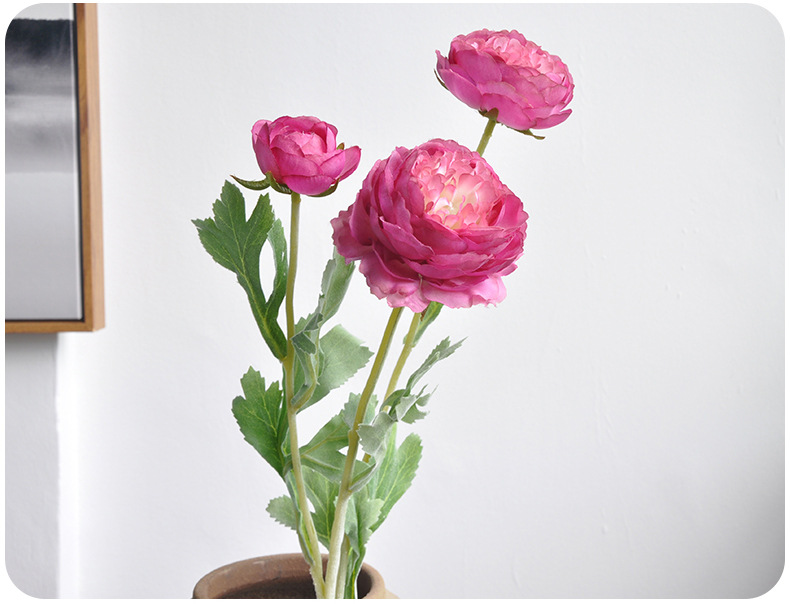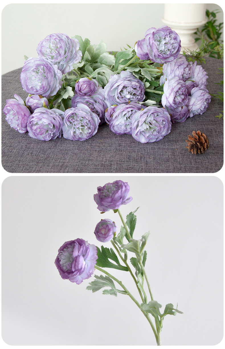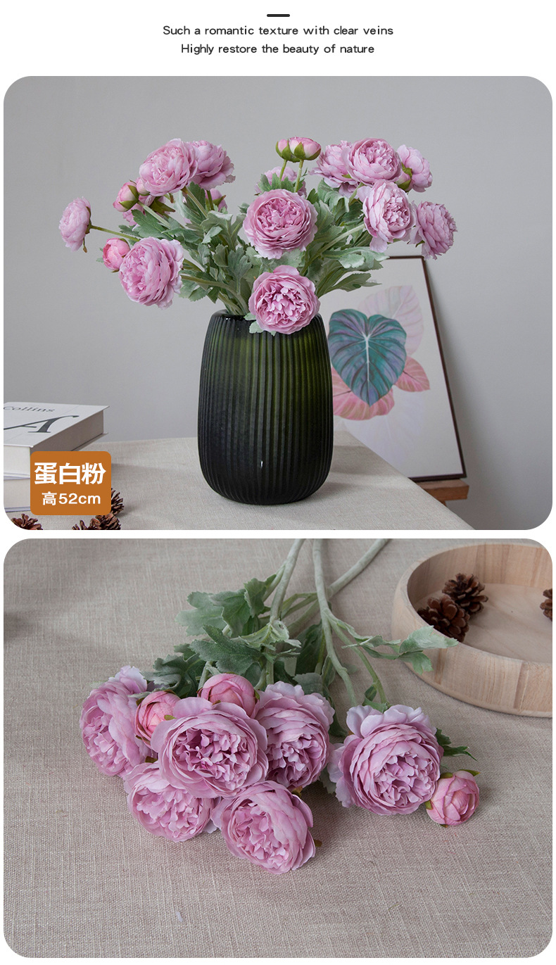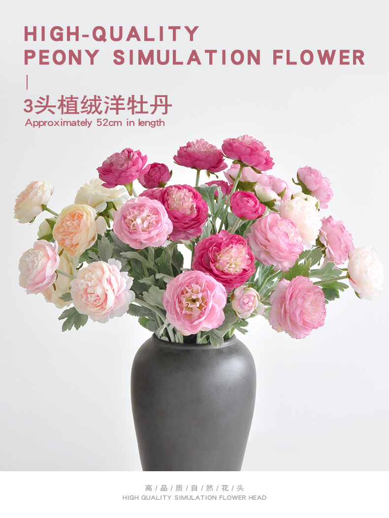 洋牡丹仿真花植绒3头千姿露莲家居客厅装饰摆件婚庆布置花艺批发