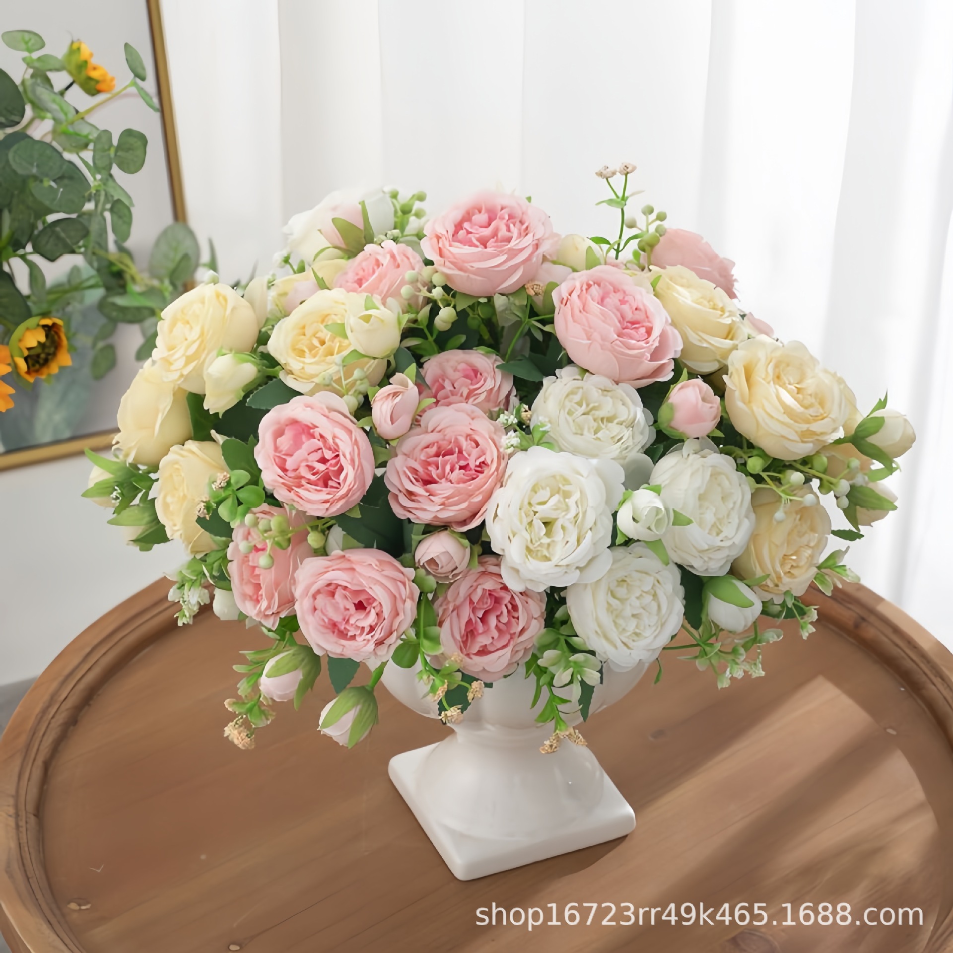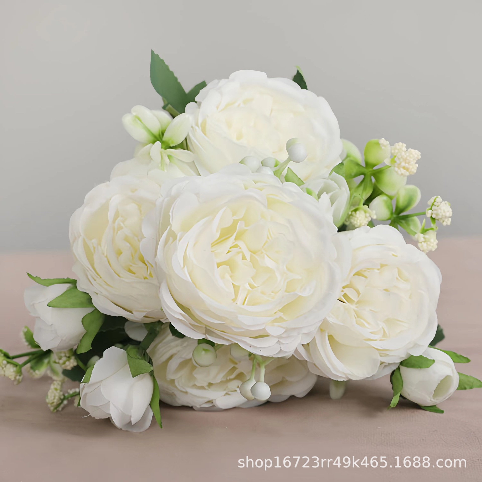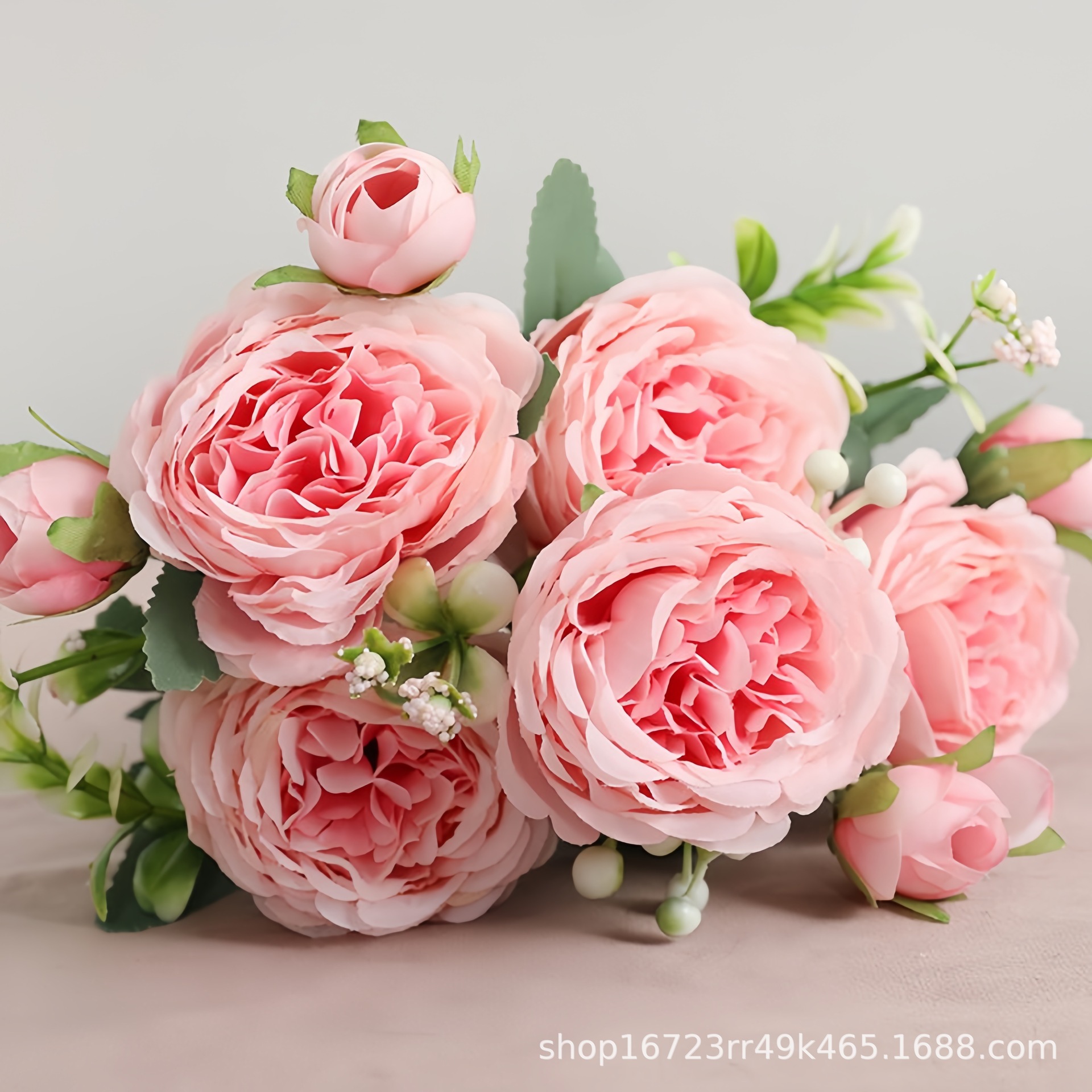 波斯玫瑰牡丹仿真花5头玫瑰花家居摆件婚庆手捧花路引桌面装饰