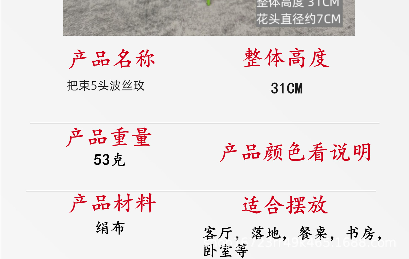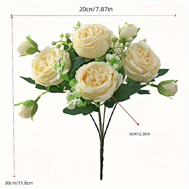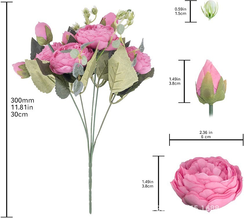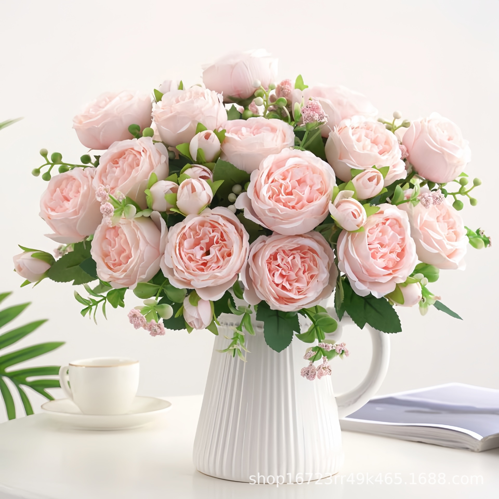 波斯玫瑰牡丹仿真花5头玫瑰花家居摆件婚庆手捧花路引桌面装饰