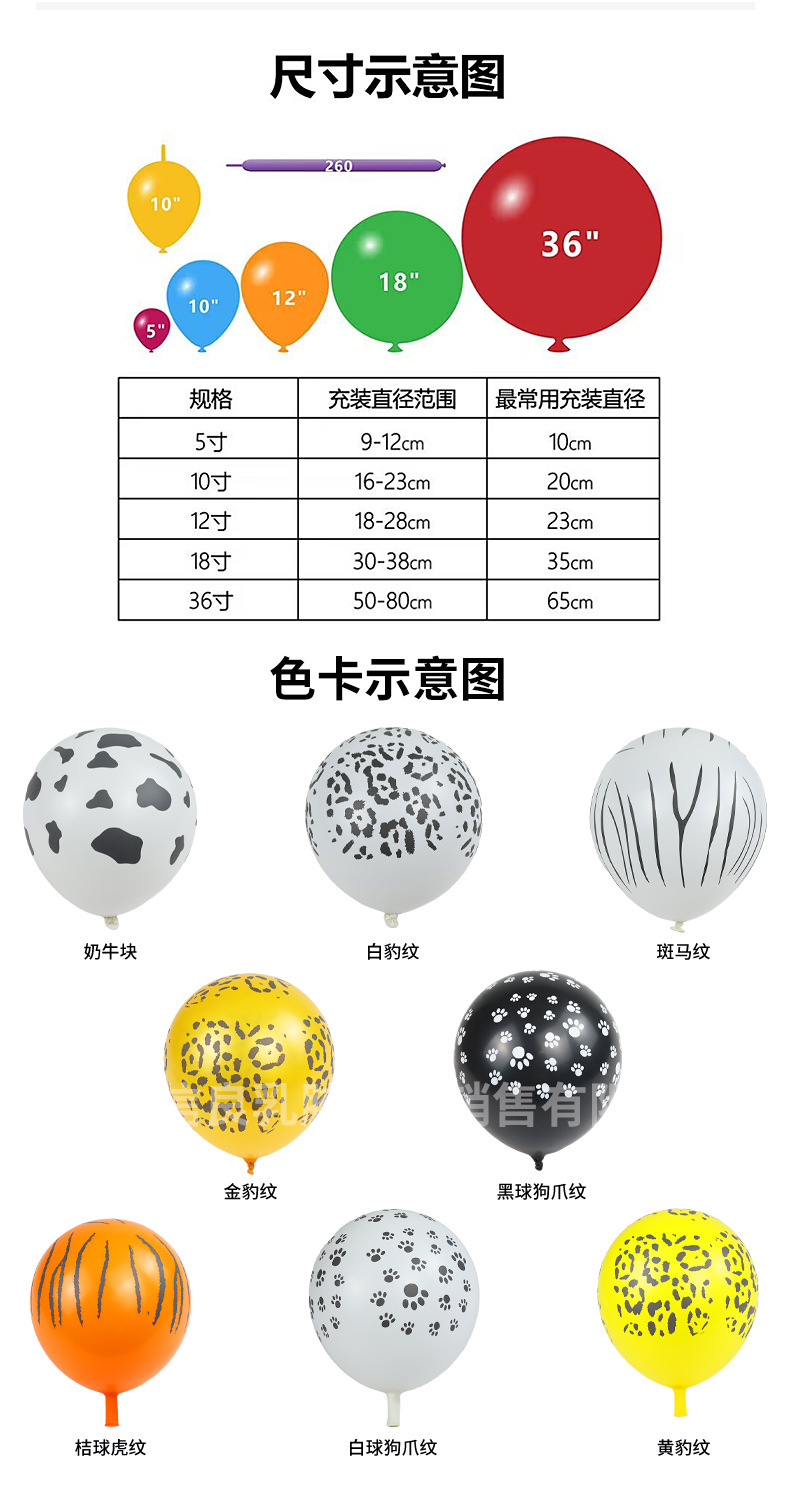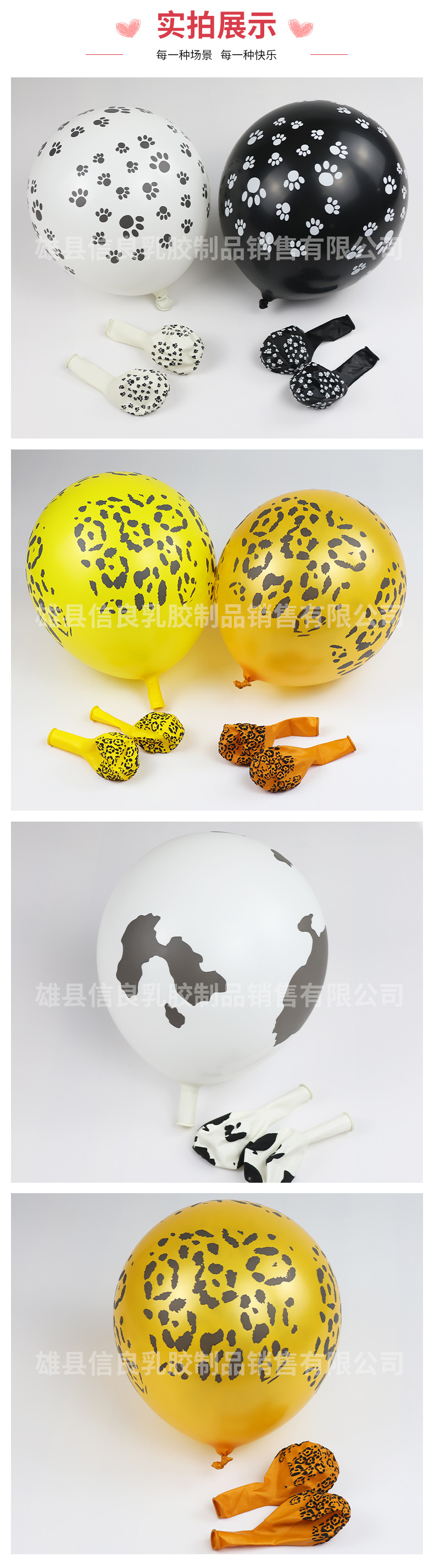 12寸动物纹印花气球卡通丛林狗爪豹纹奶牛纹派对装饰用品气球