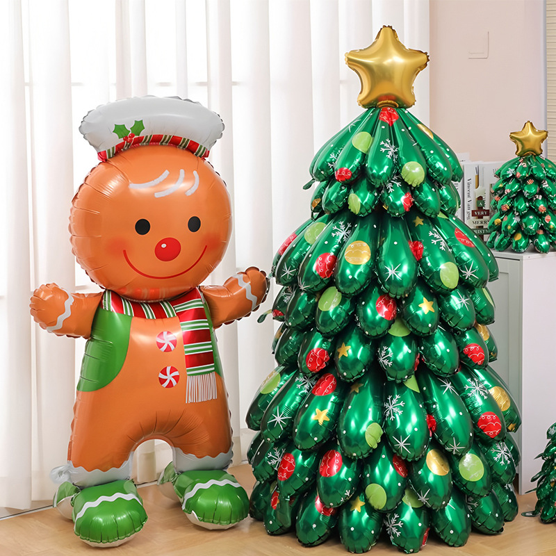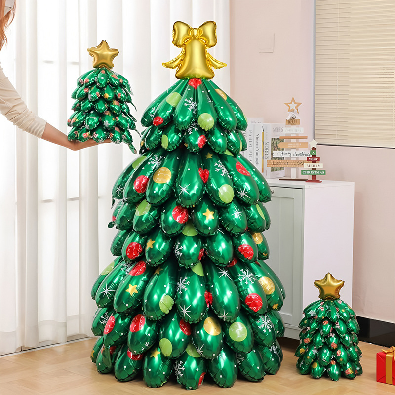 跨境热卖圣诞节气球氛围装饰大号圣诞树商场活动珠宝店开业铝膜球
