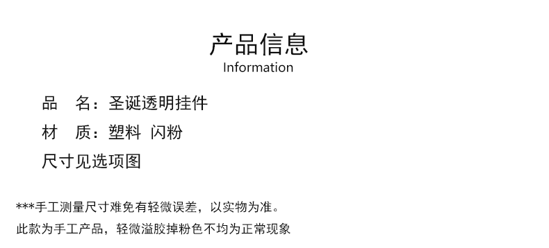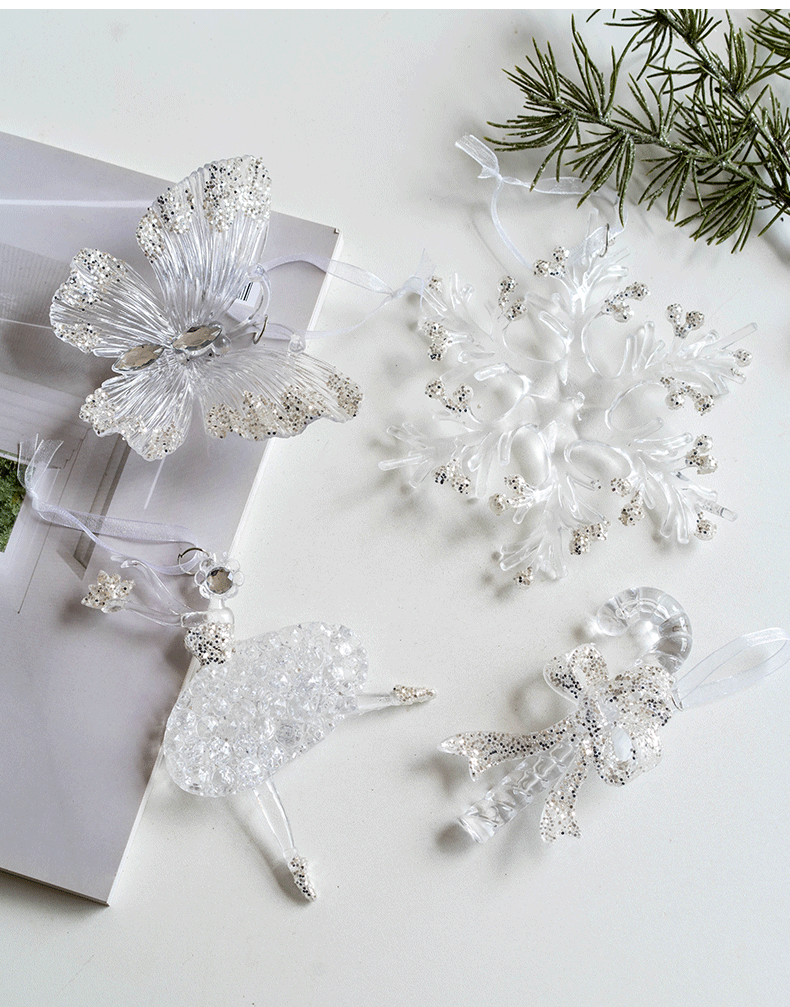 跨境新款圣诞树装饰透明亚克力雪花麋鹿天使挂件圣诞节装饰品