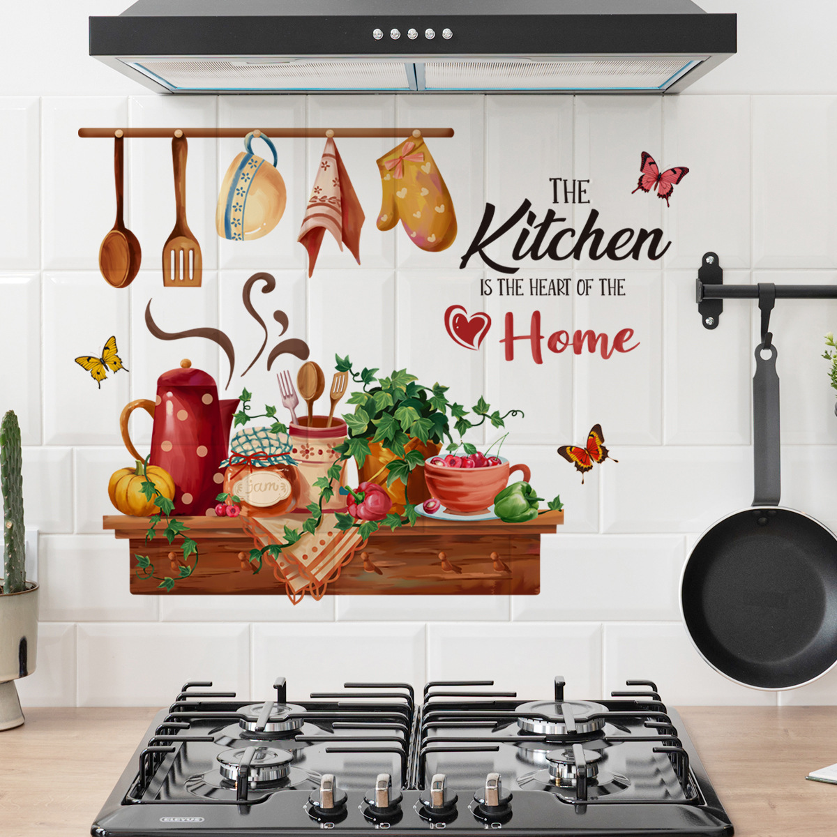 跨境厨房用具绿植盆栽厨房贴纸家居装饰墙贴画PVC自粘厂家批发