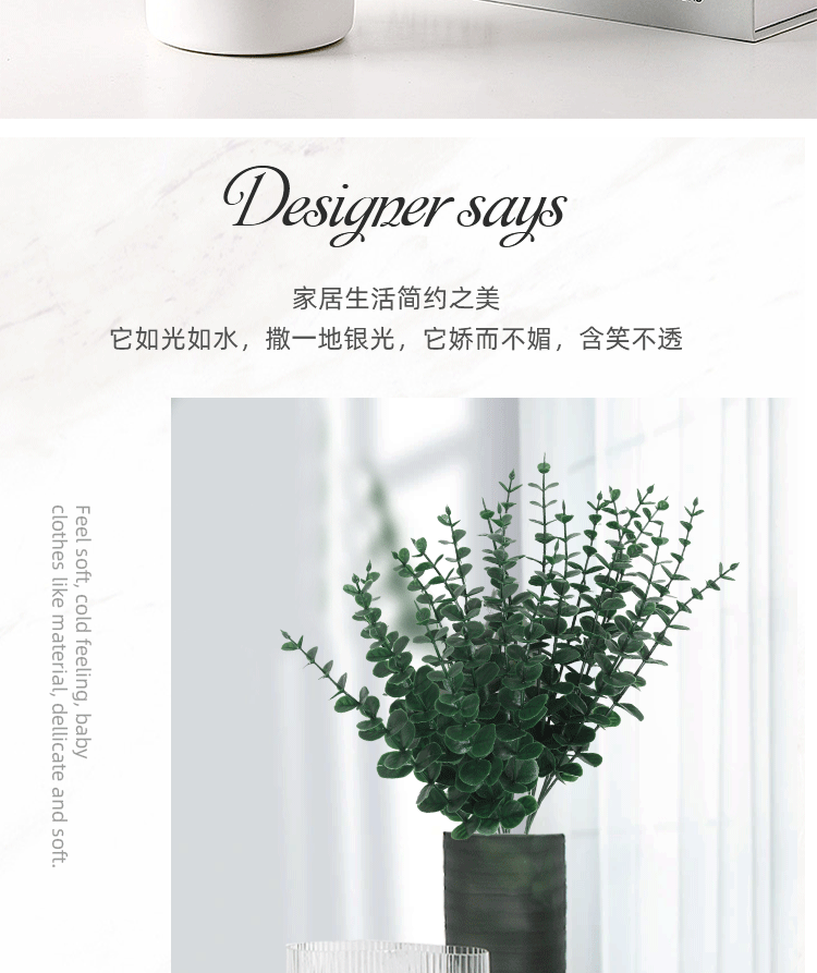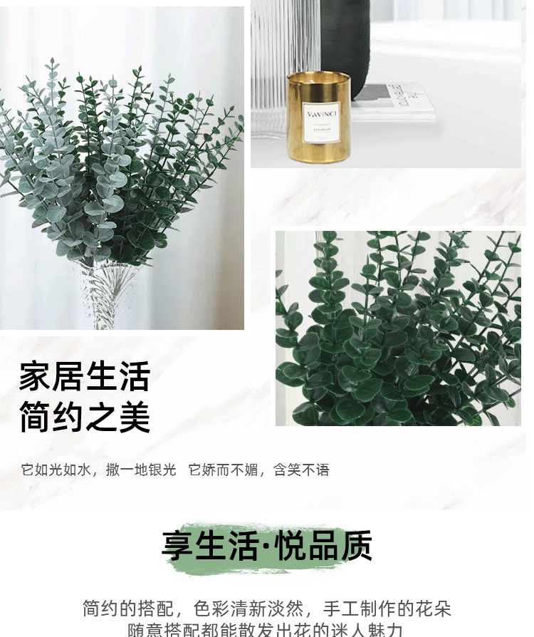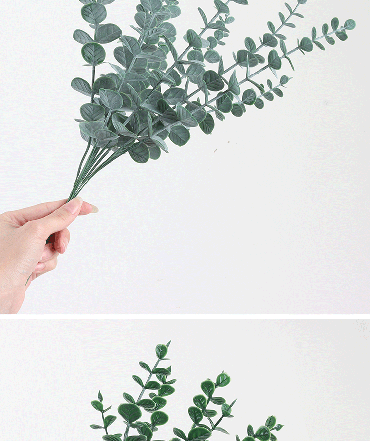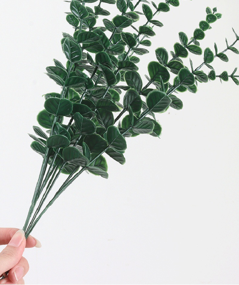 跨境仿真绿植单支尤加利金钱叶亚马逊桉树叶婚庆家居室内装饰假花