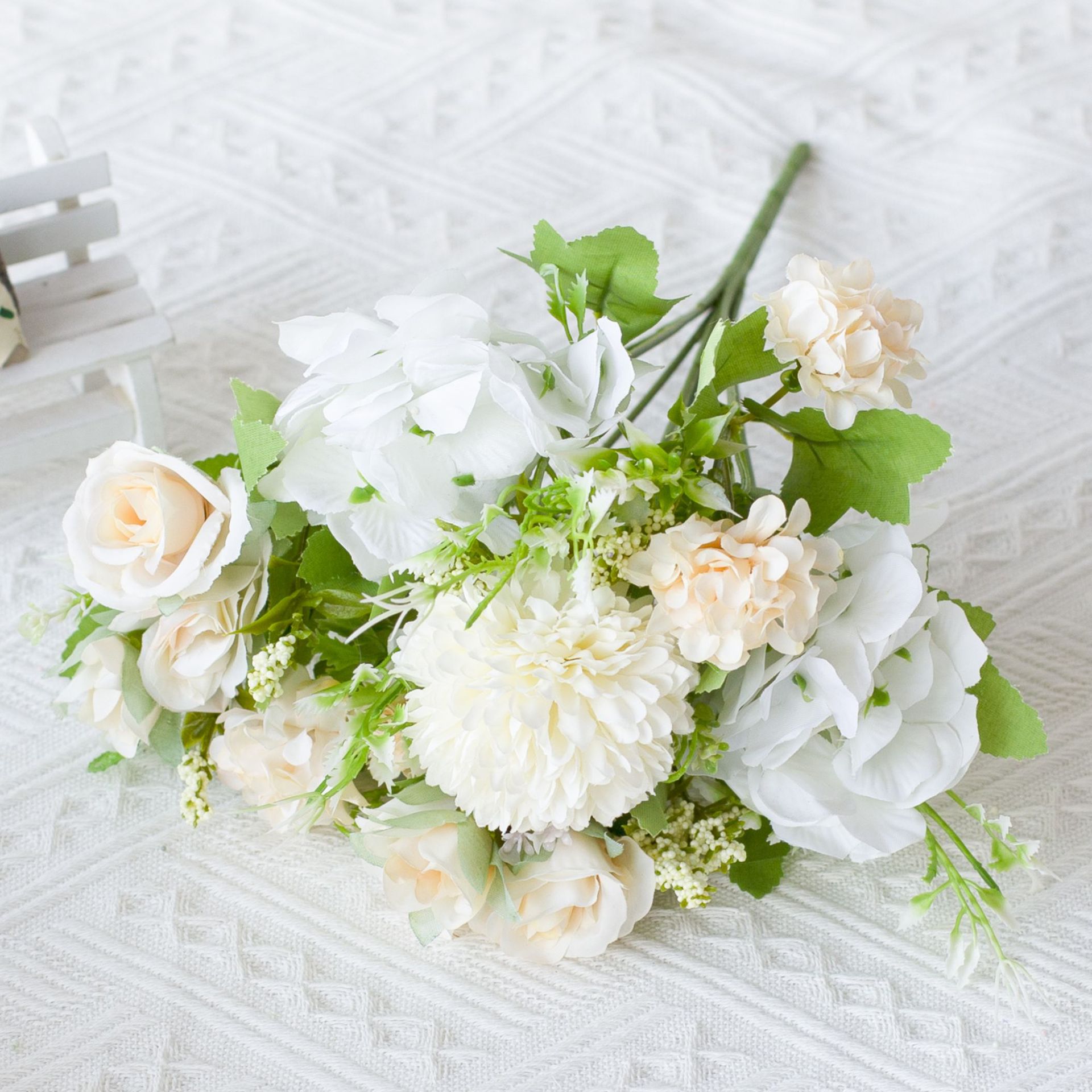 北欧ins仿真玫瑰绣球婚庆手捧花束 婚礼摄影道具花艺家居装饰仿真