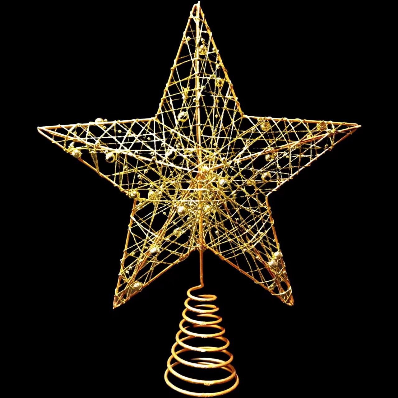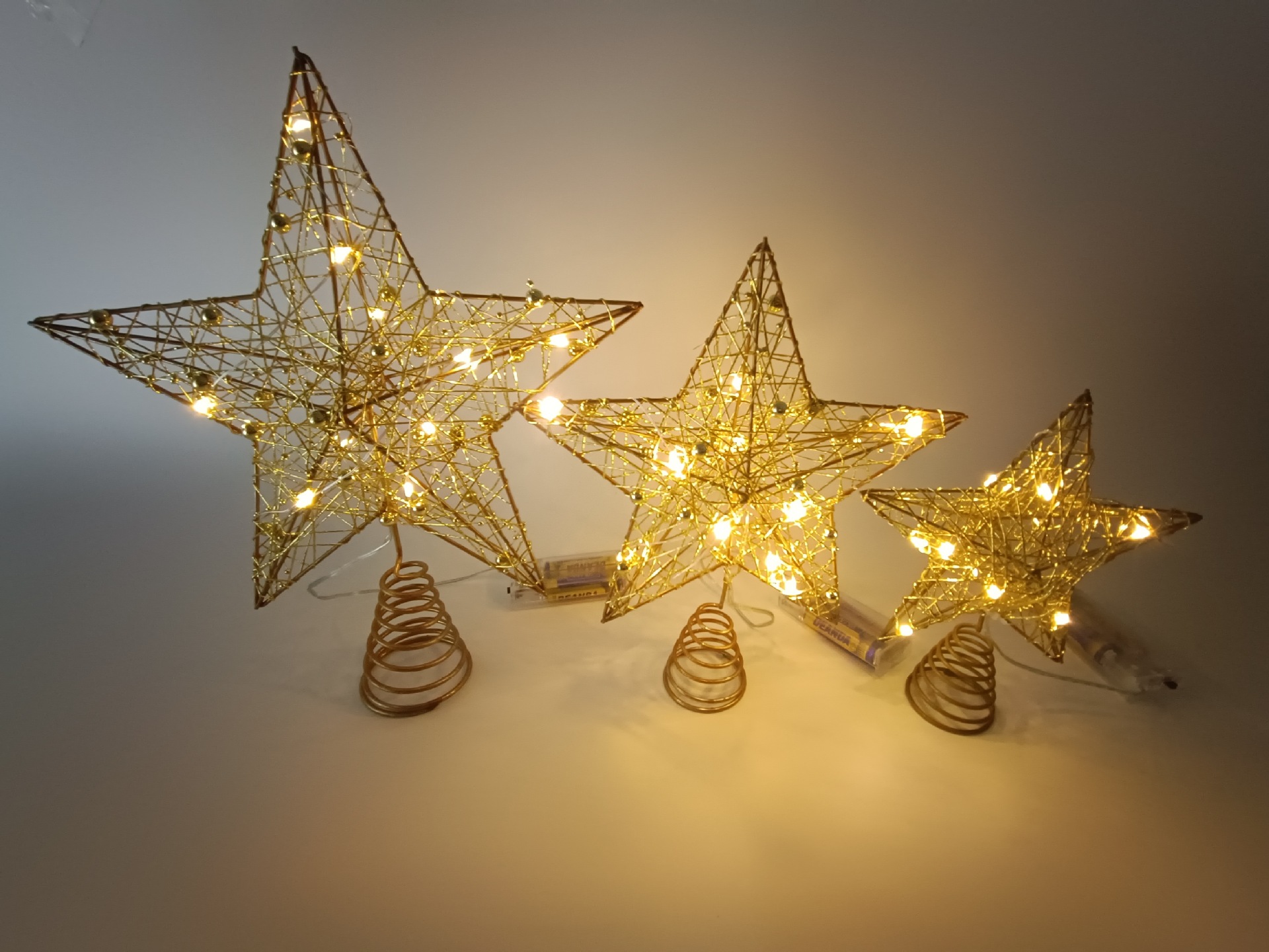 跨境供应新款树顶星带灯五角星装饰品LED圣诞树顶部装饰亮灯道具