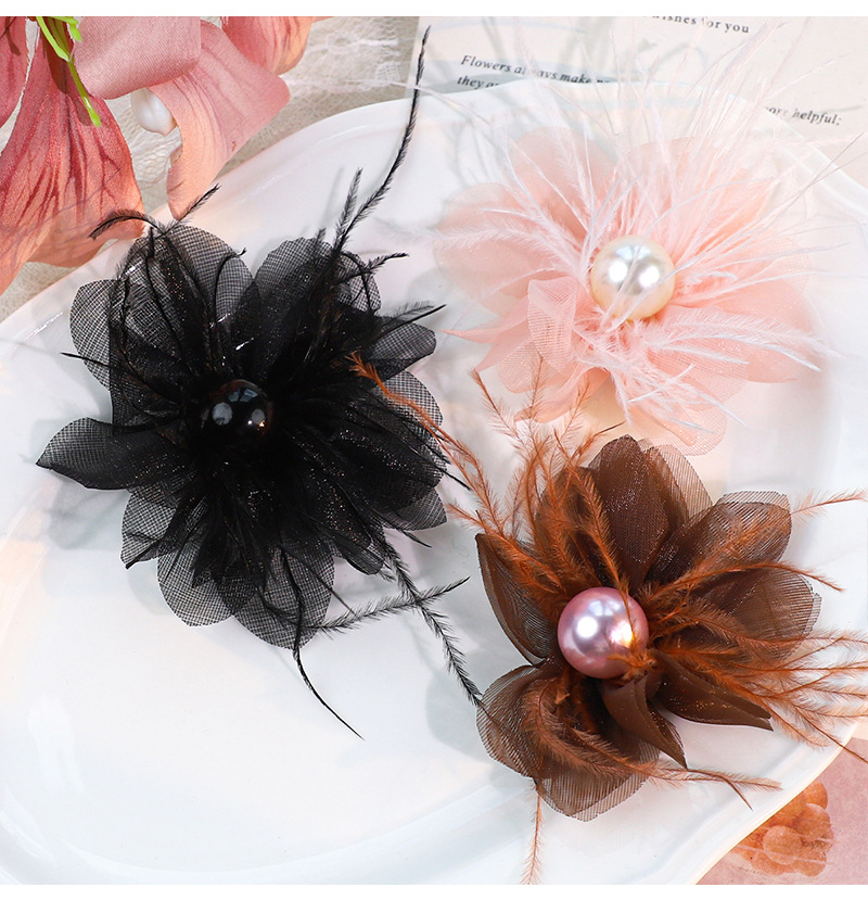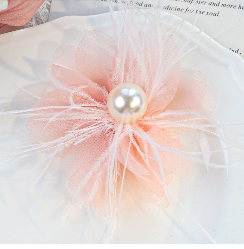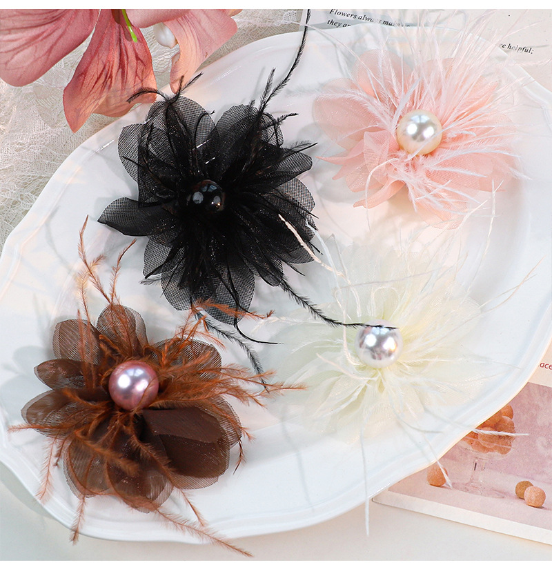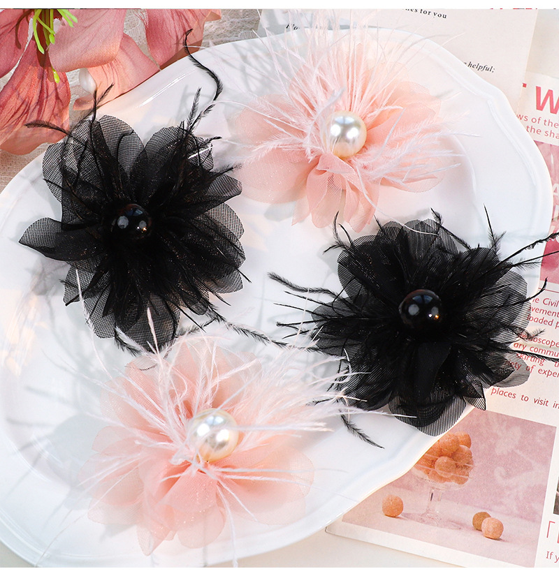 羽毛立体纱花鸵鸟毛人工珍珠花朵服饰头饰配件辅料半成品材料发箍
