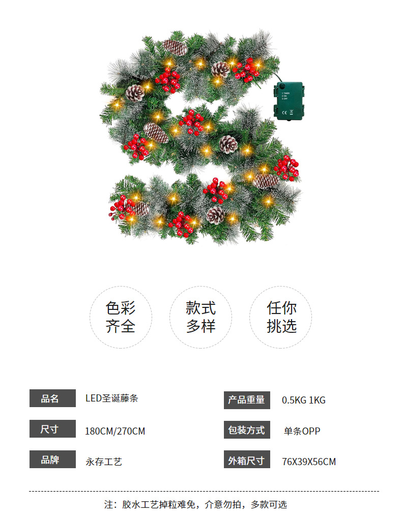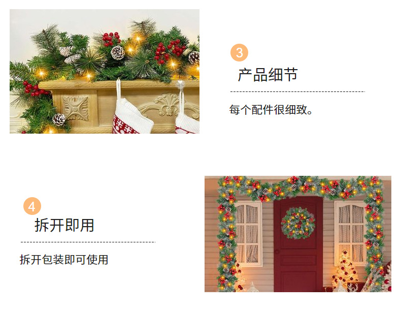 圣诞花环门挂180/270CM人造装饰品圣诞树藤条挂饰场景布置门