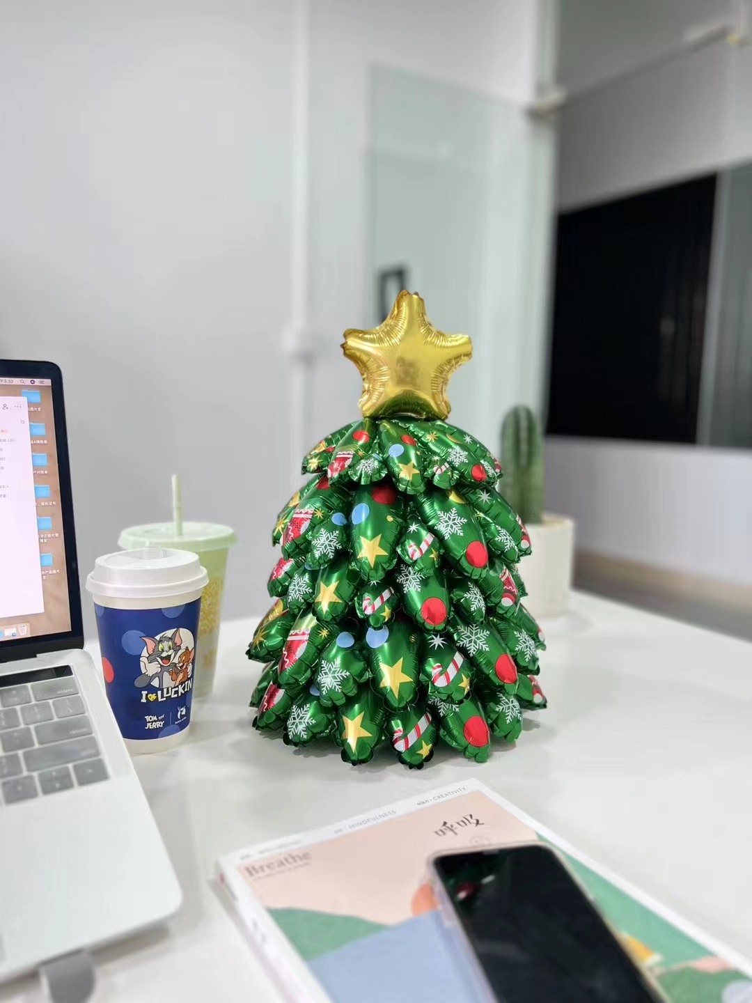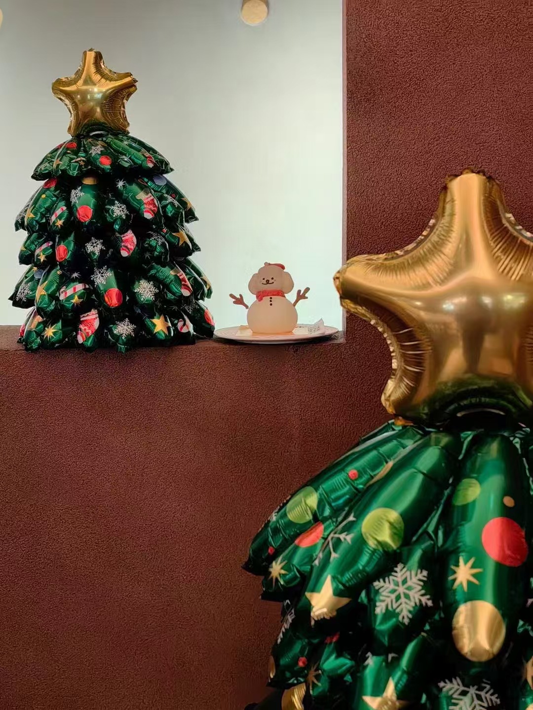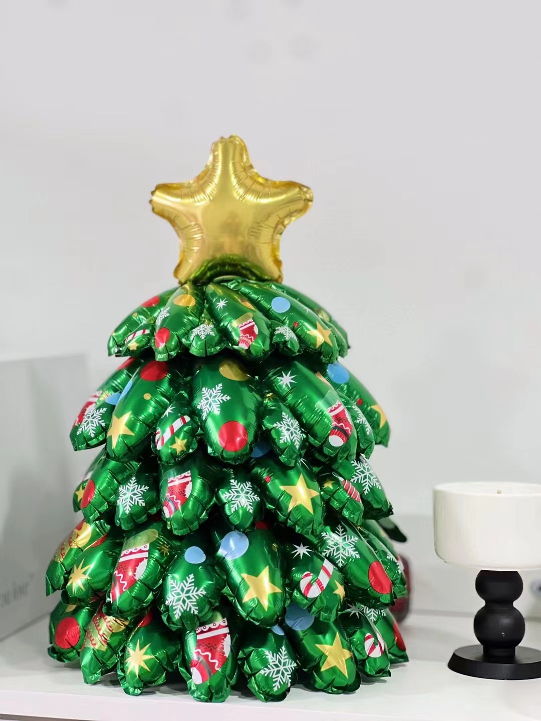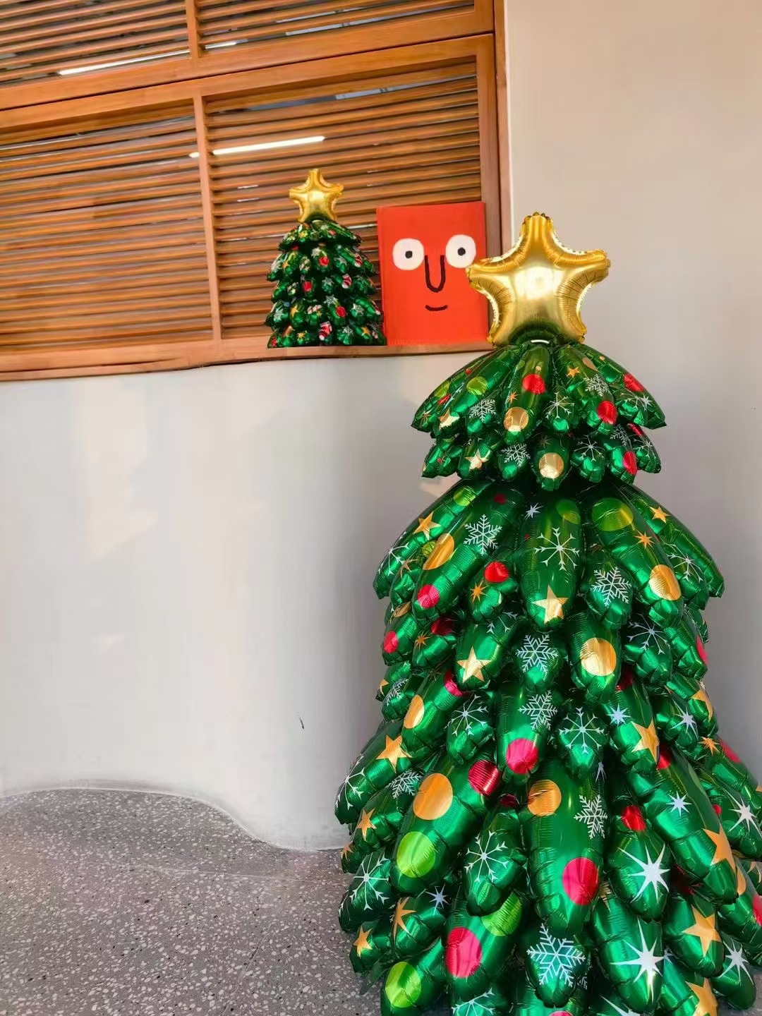 大号发光圣诞树站立款公司前台装饰LED灯双面圣诞树铝膜气球商场