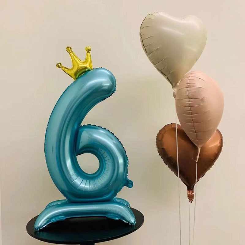 跨境新品生日派对大号站立数字气球皇冠粉色蓝色42寸数字铝膜球