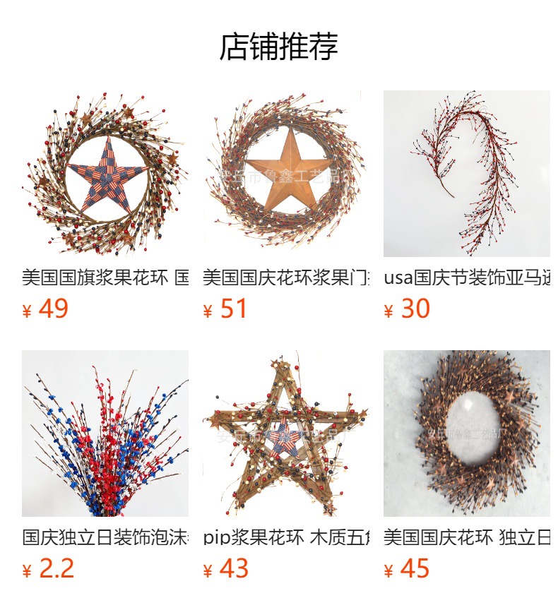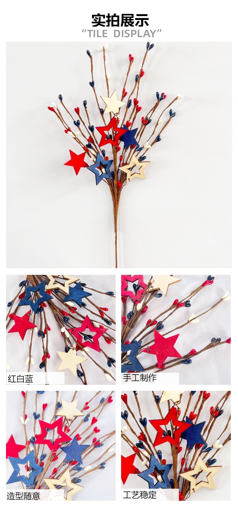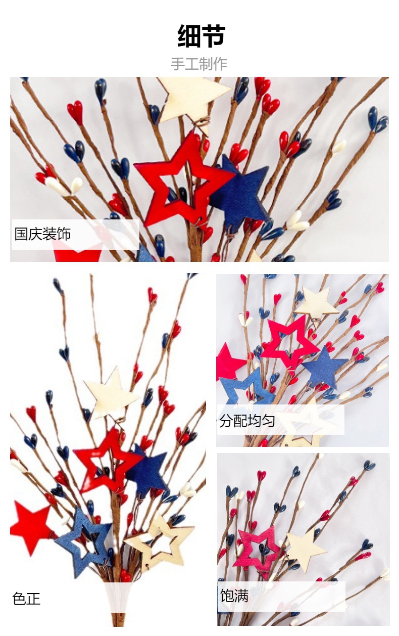 现货独立日花枝亚马逊美国国庆节树枝红白蓝五星枝家居爱国装饰花