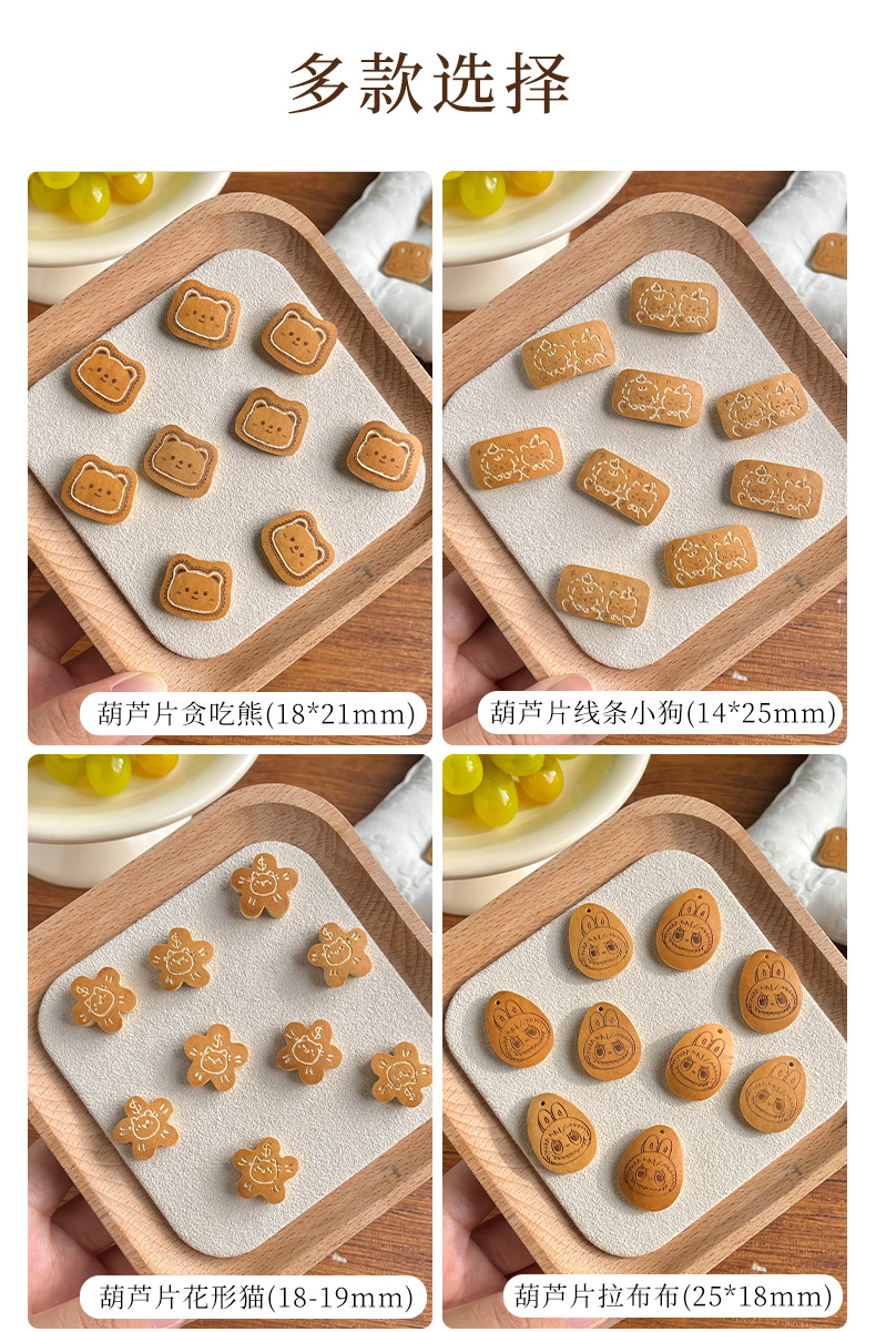 精工雕刻卡通天然文玩葫芦片木质吊牌印花配饰diy手工制品配件