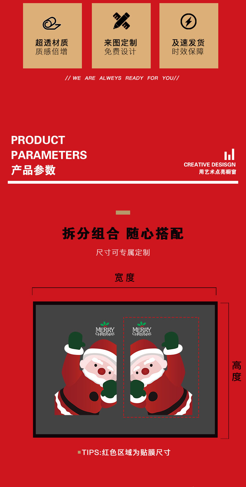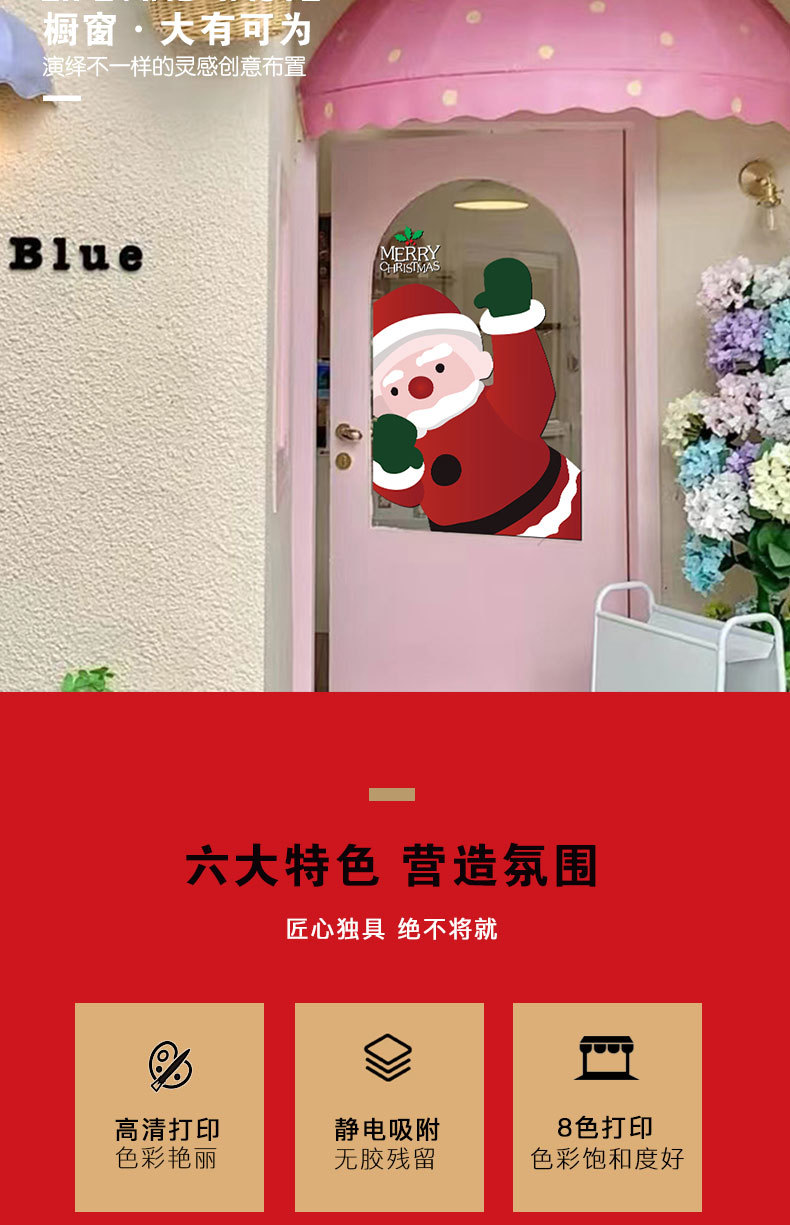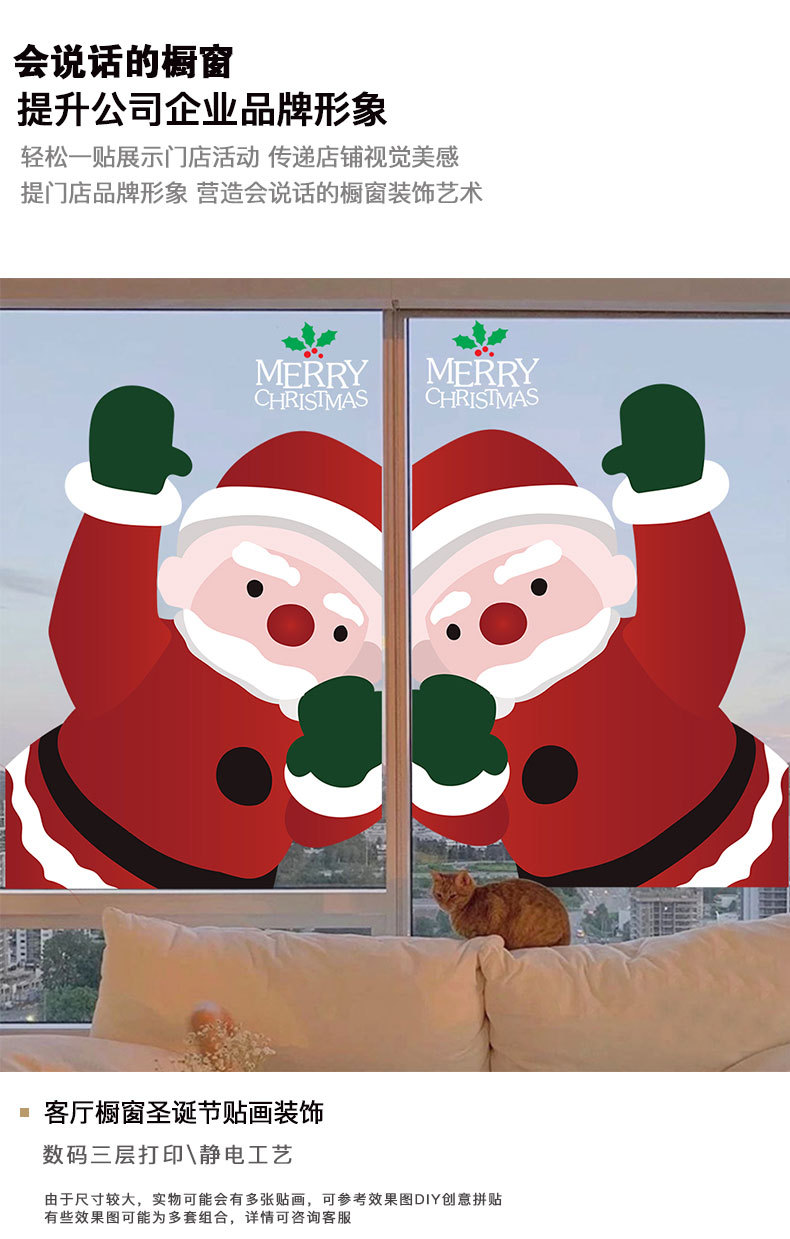圣诞节装饰品布置2026圣诞老人窗贴静电玻璃橱窗门贴商场贴纸窗花