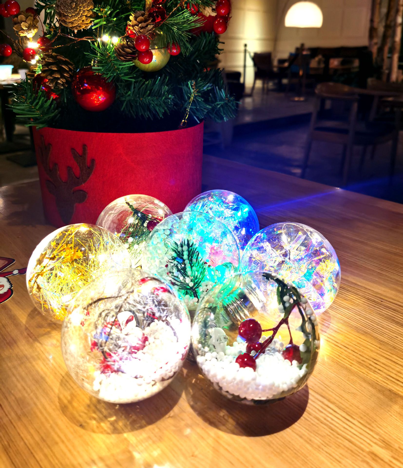 跨境圣诞节装饰品圣诞球发光彩球8cm彩绘透明圆球圣诞树装饰挂件
