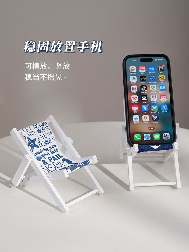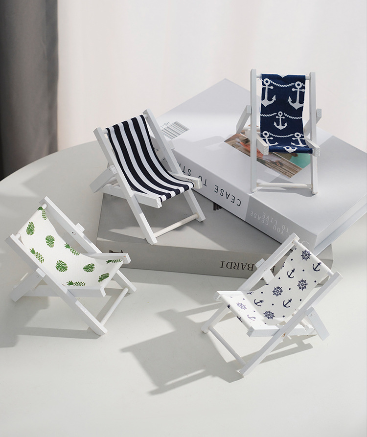 地中海风格木制小号沙滩椅家居儿童房装饰摆件手机座创意饰品道具
