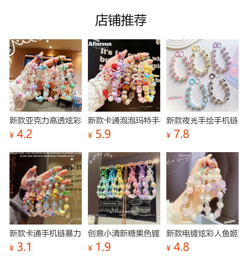创意滴油爱心蝴蝶结手机链糖果色系珠串钥匙扣手机壳挂件包包挂饰