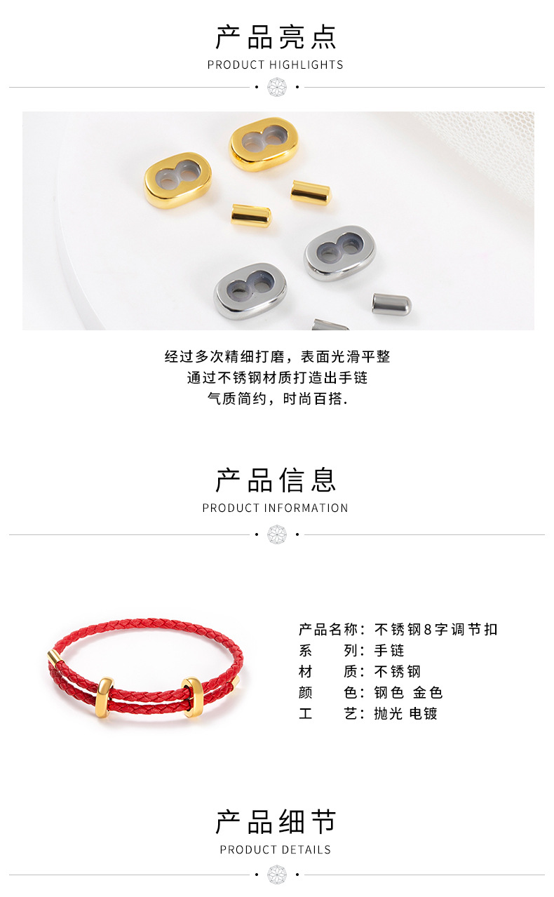新品不锈钢8字调节扣 皮绳 钢丝绳 米兰绳手链扣配件 DIY饰品批发