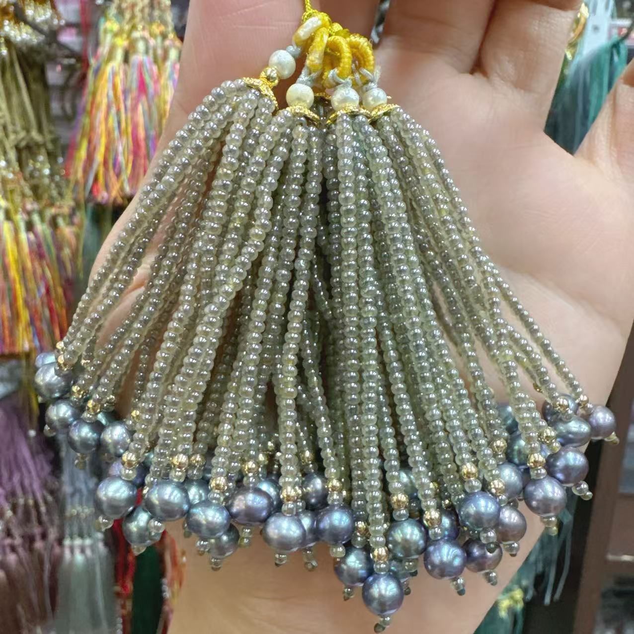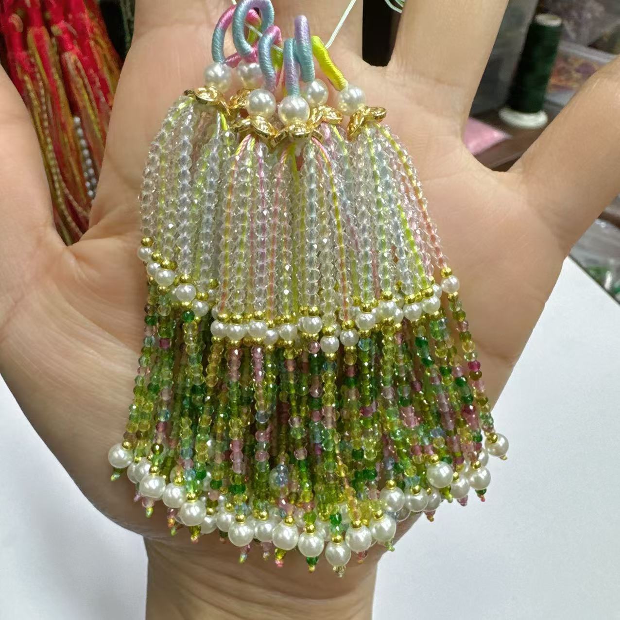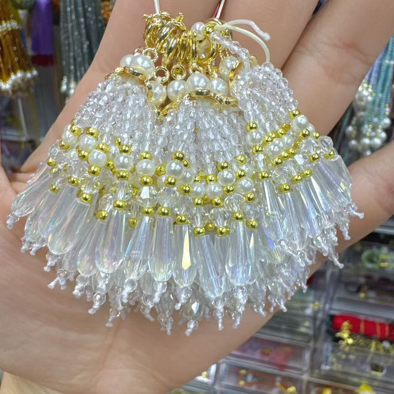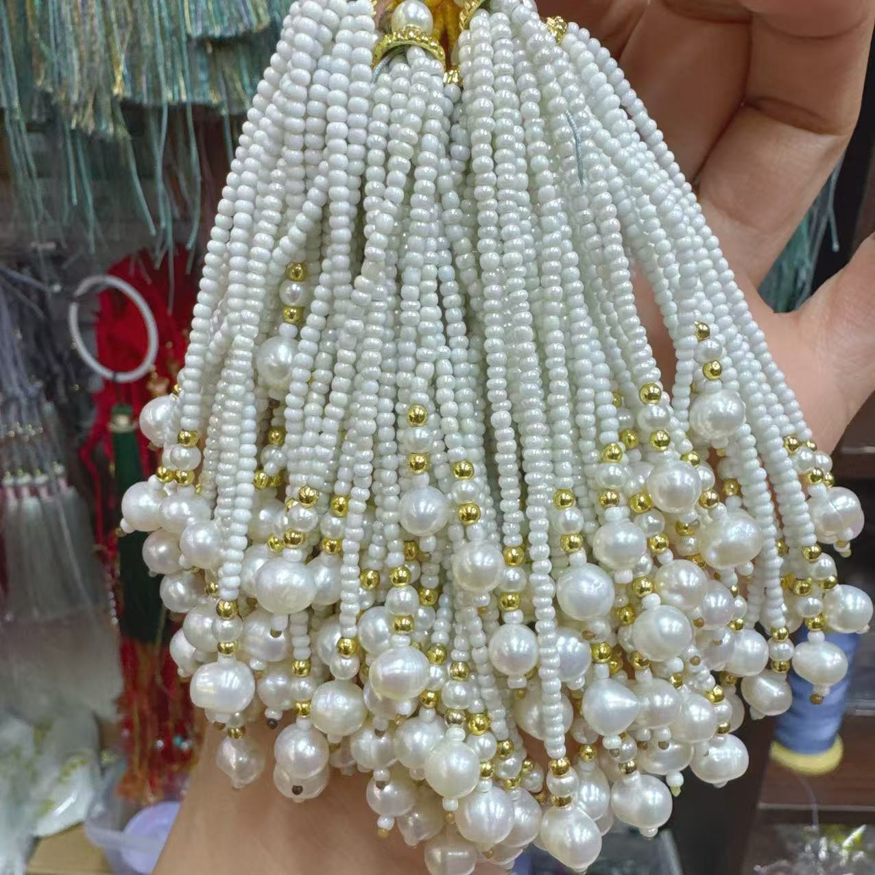 工厂直发尖晶石白贝珠流苏坠DIY包挂挂件文玩编制饰品配饰服装