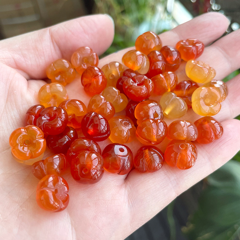 天然玉髓桂花配饰首饰半成品黄玛瑙立体雕刻多色花朵DIY饰品