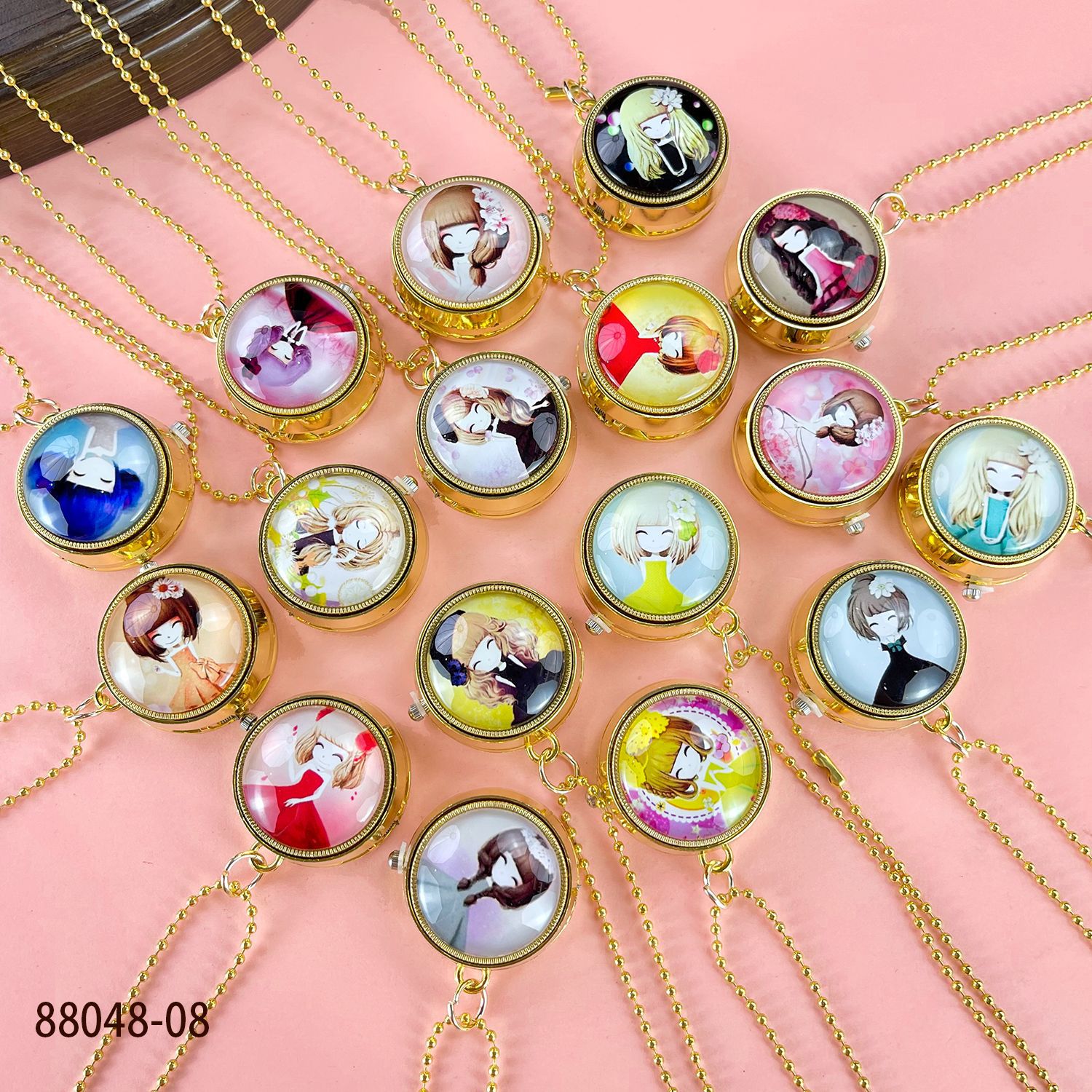 30款图案可选复古怀表 卡通电子表 旋转翻盖吊坠项链儿童生日礼物