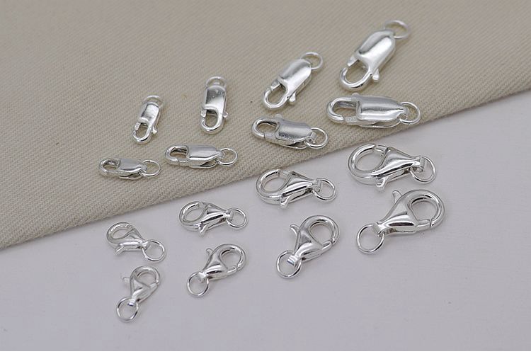 S925纯银单圈水滴扣方扣弹簧扣虾尾扣项链手串扣手工DIY饰品配件