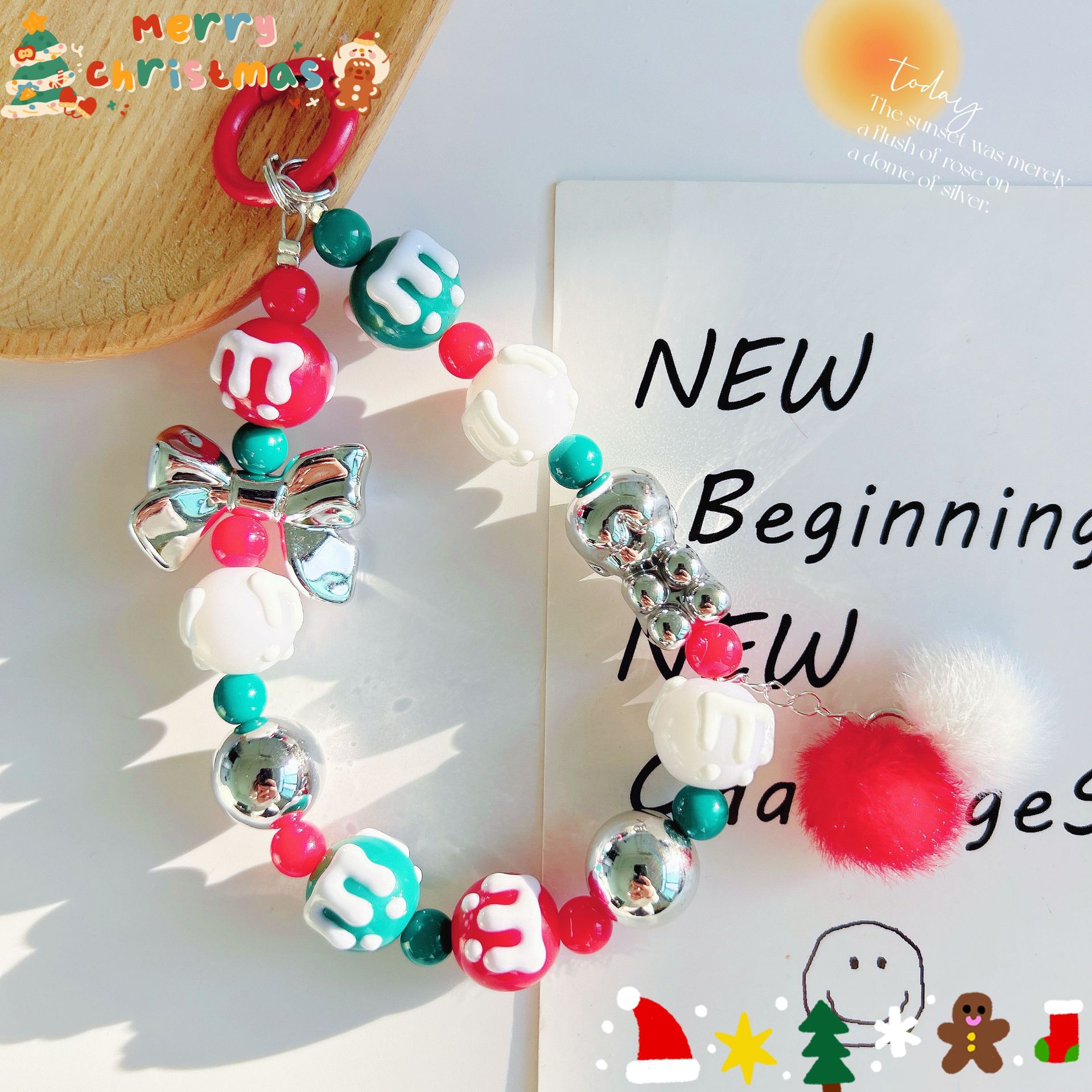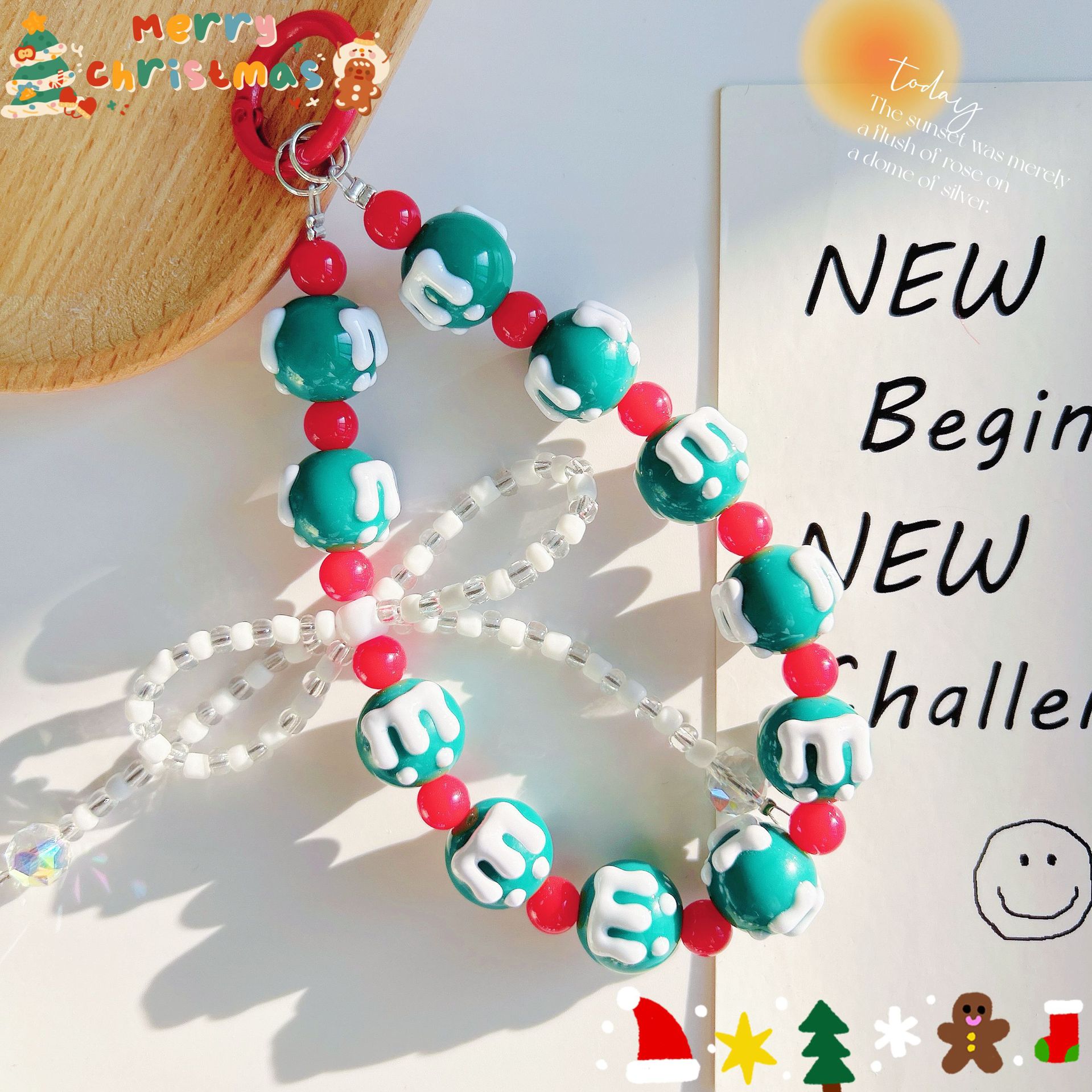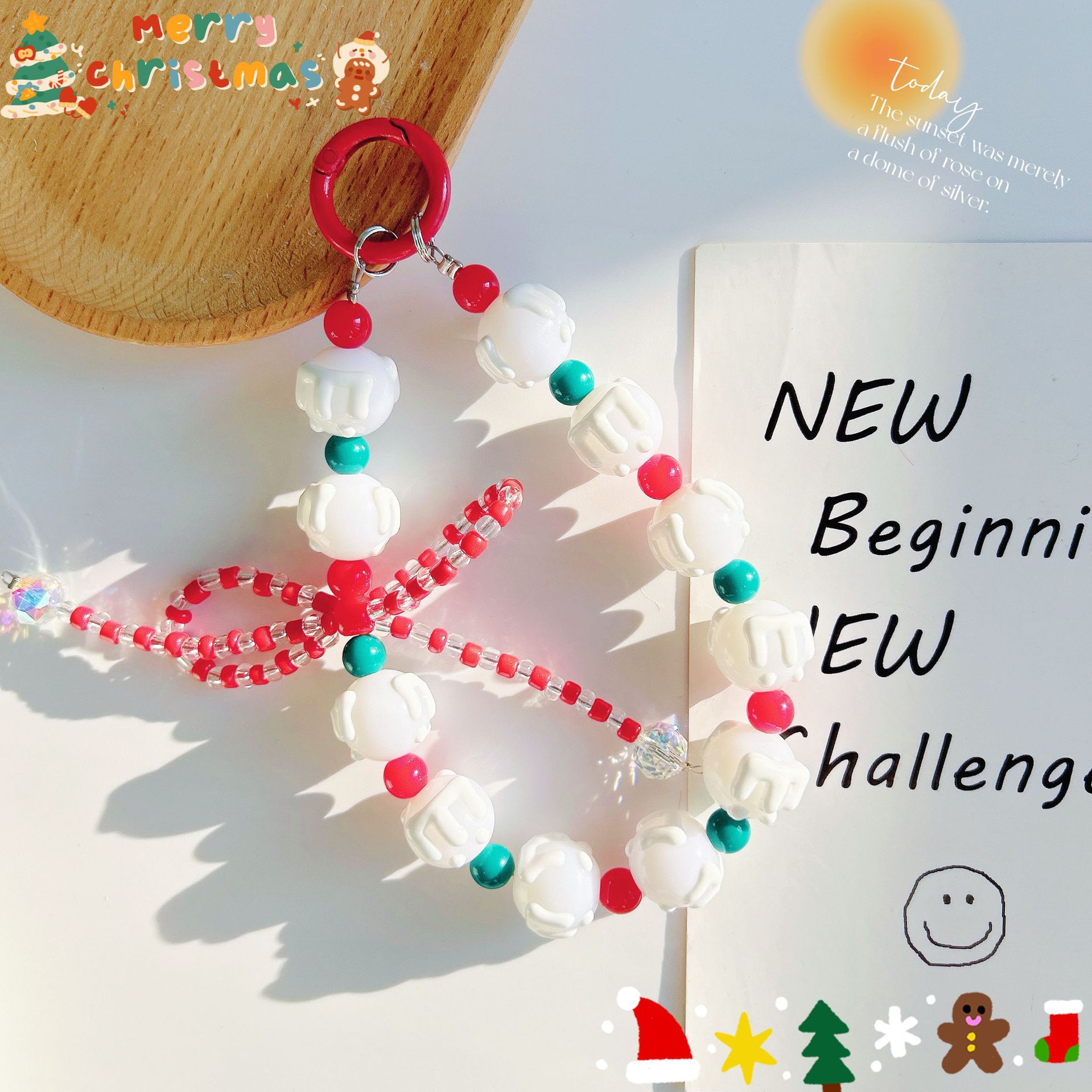 跨境圣诞系列手绘珠串手机挂件珠串手机链挂饰圣诞老人钥匙扣链条