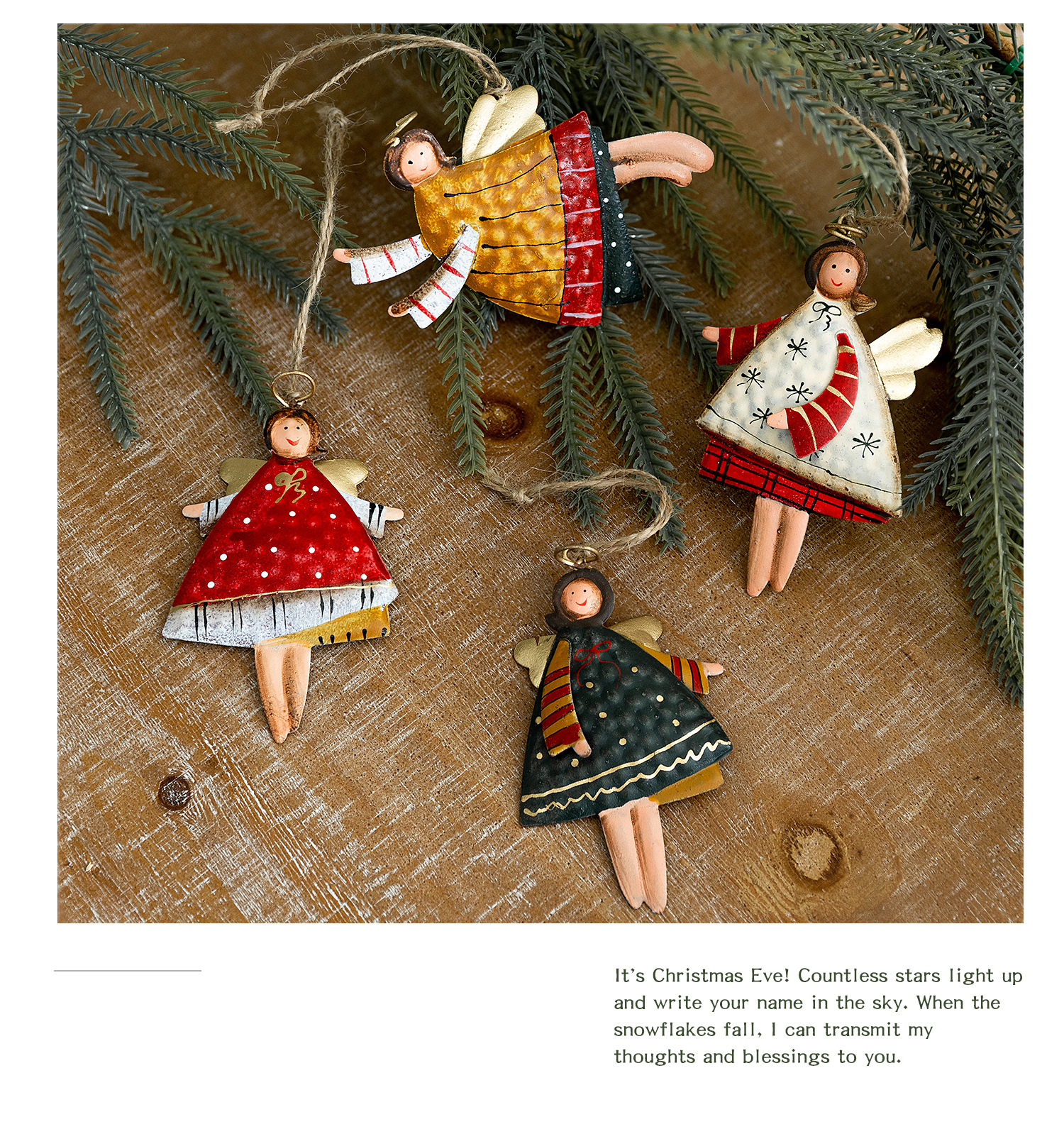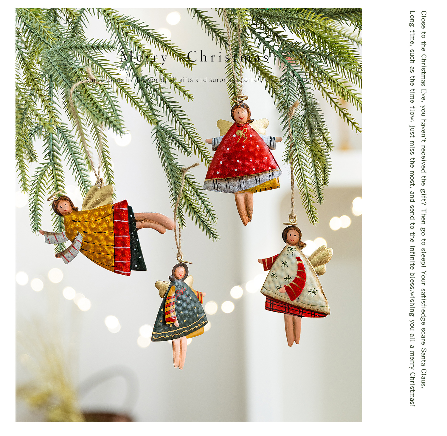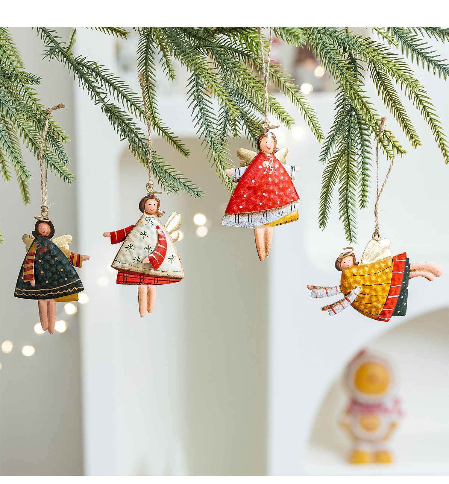 跨境圣诞装饰铁艺挂件可爱彩色天使家居温馨小配件圣诞树上挂件