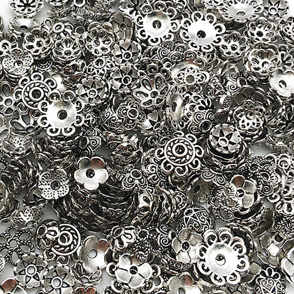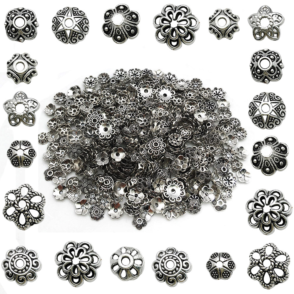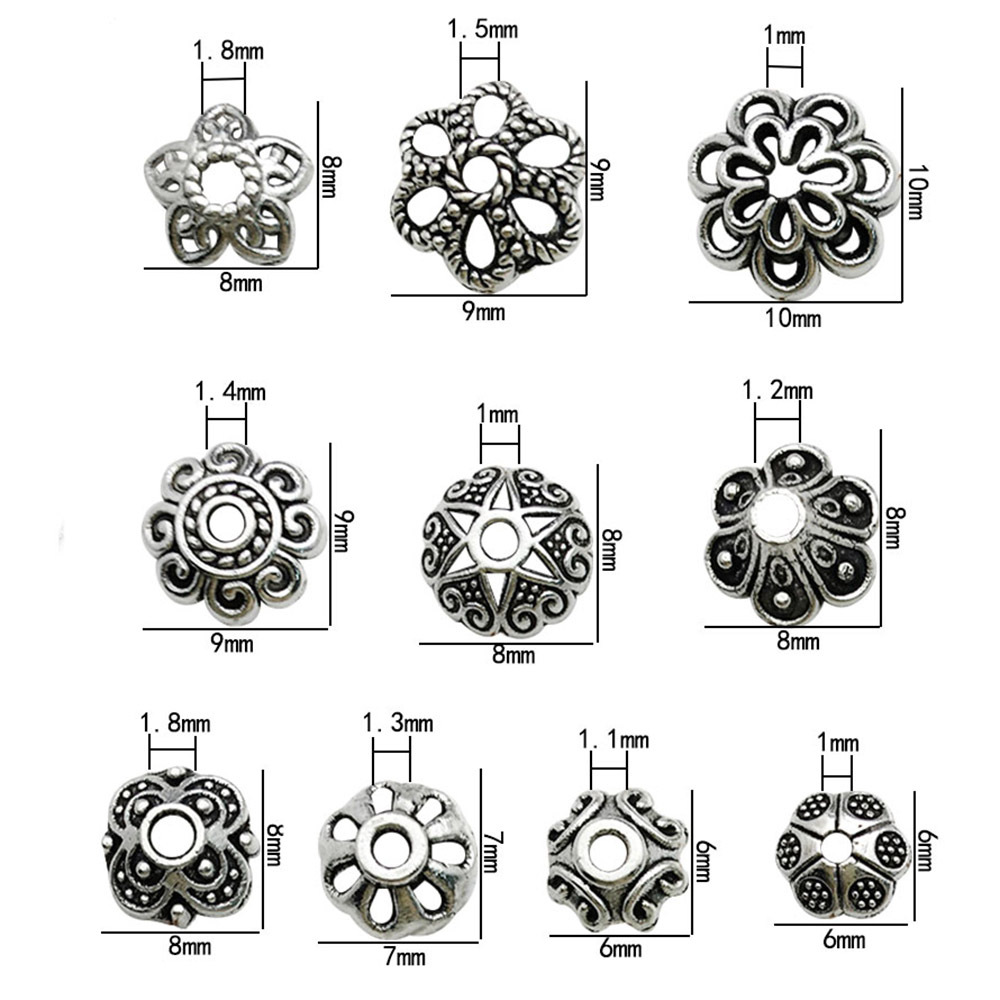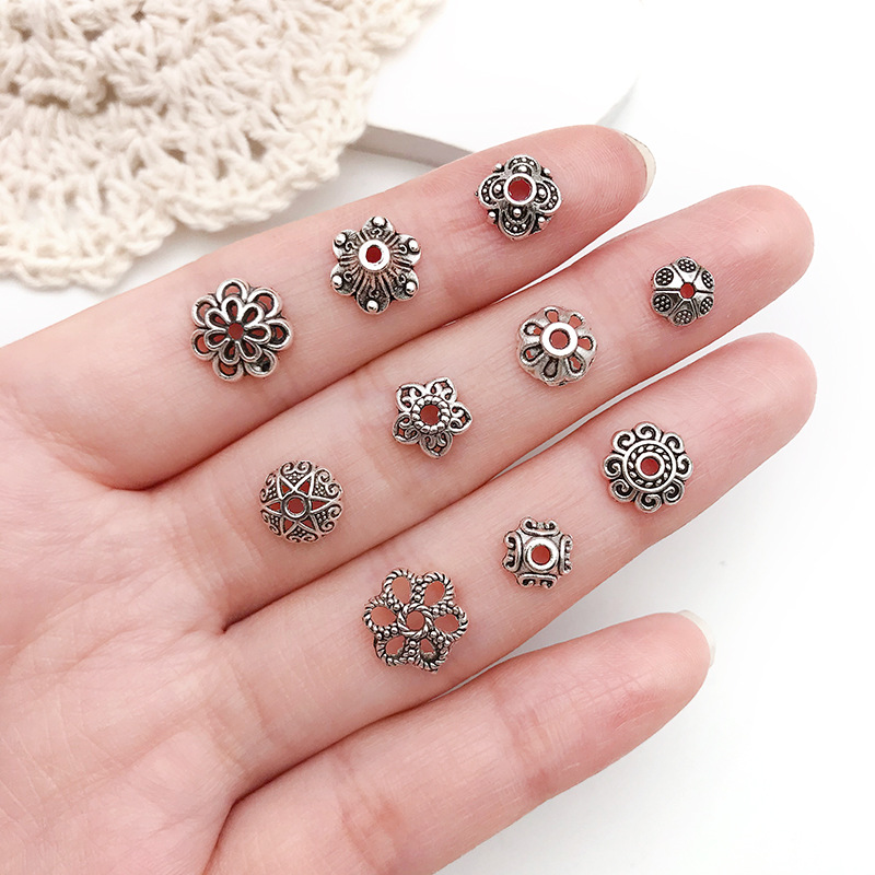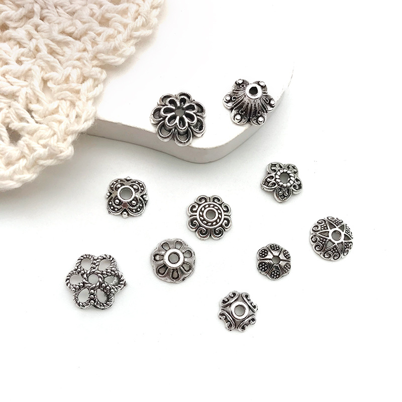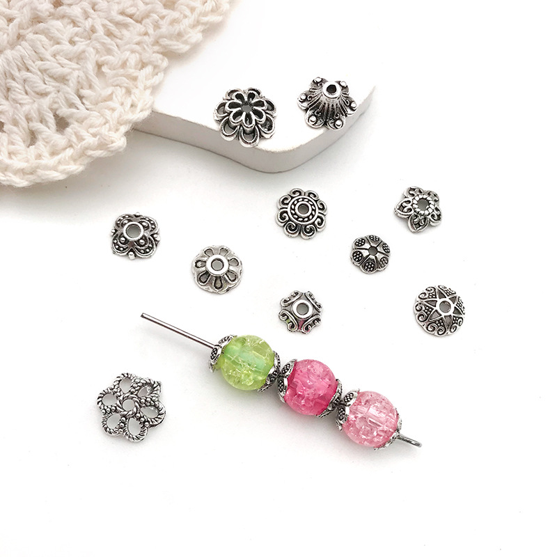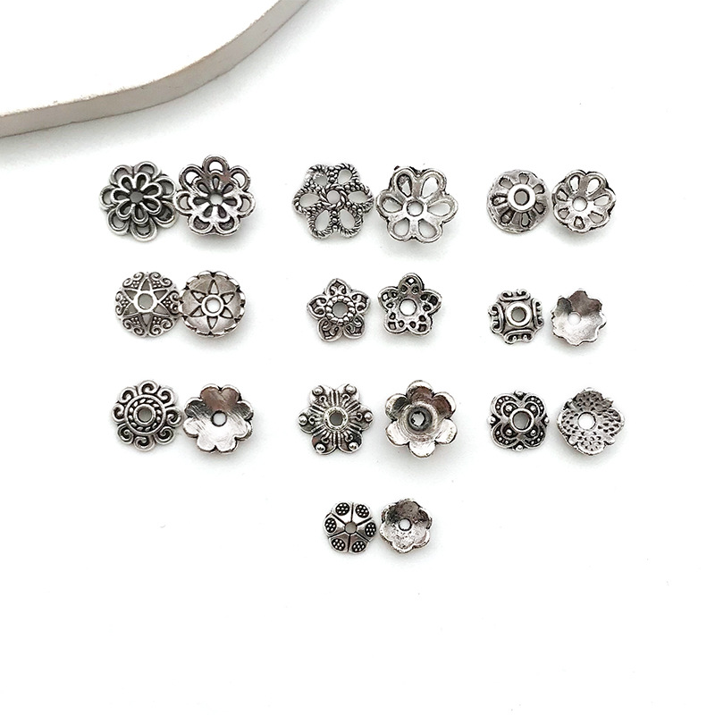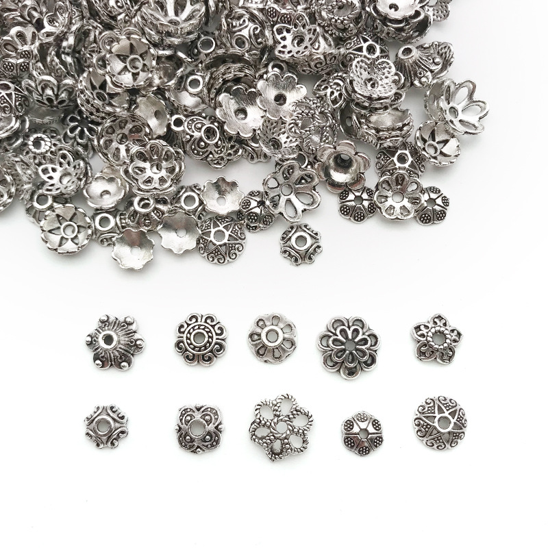 DIY手链串珠隔珠隔片花帽复古银色多尺寸花托吊坠耳饰品环配件