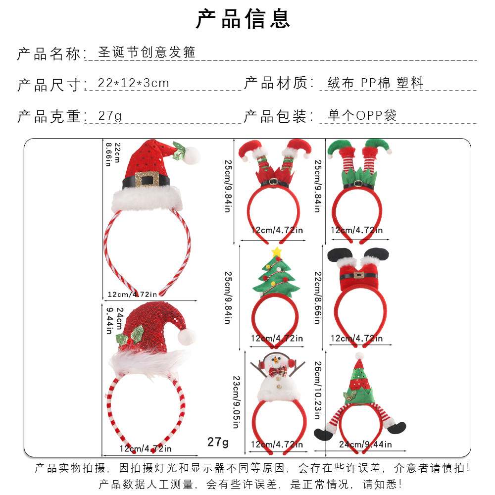 铭冠新款圣诞节节日装饰头箍派对聚会帽子皮带发饰小丑脚发箍卡通