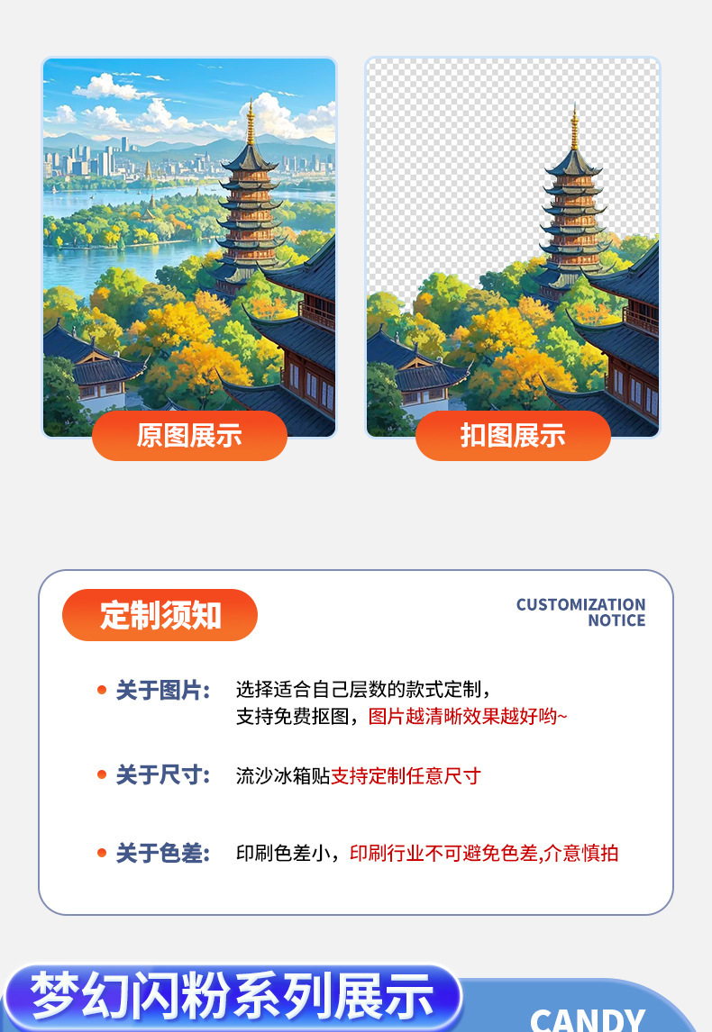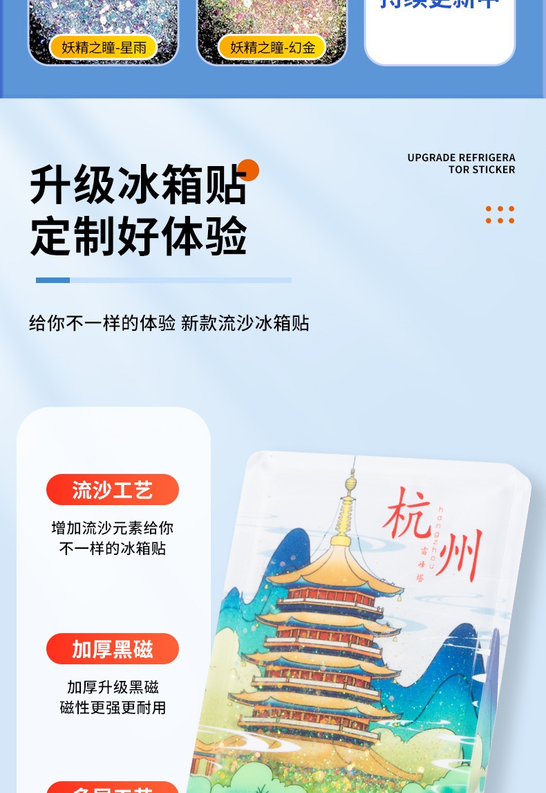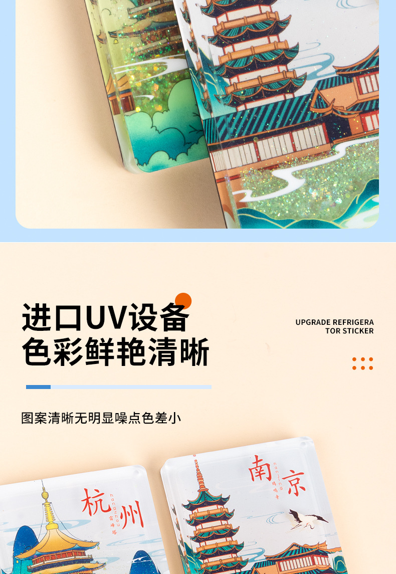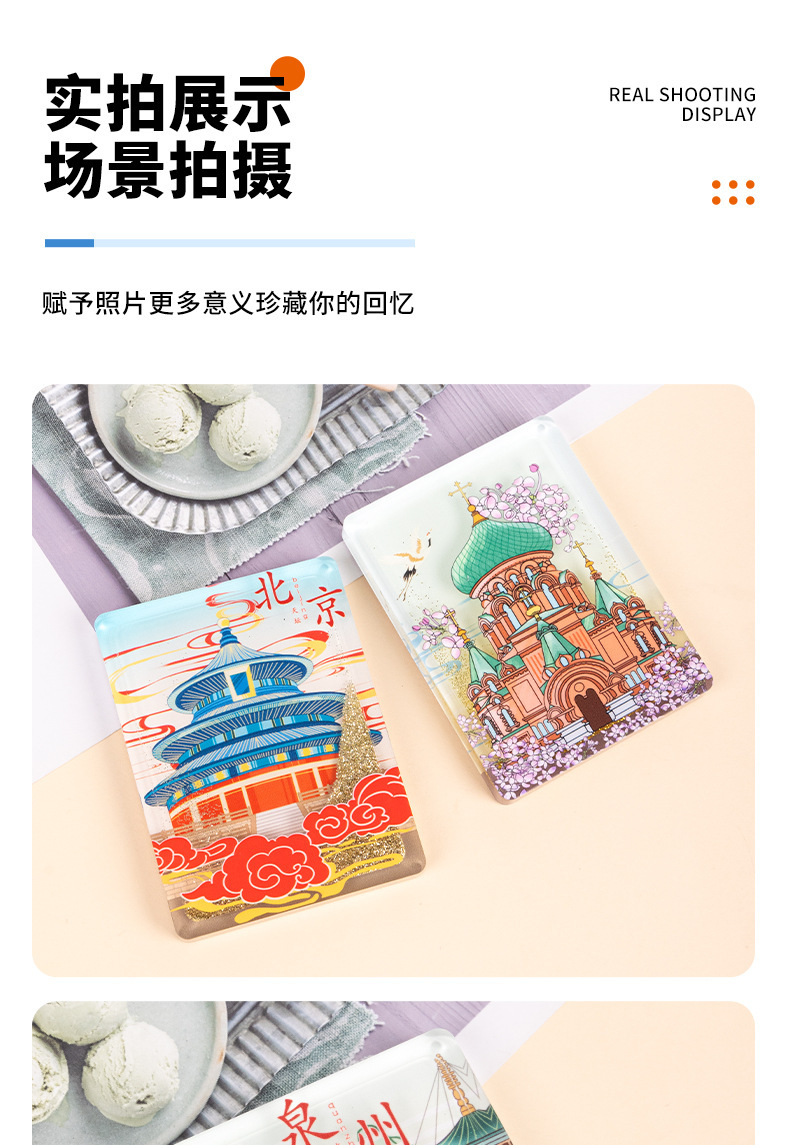 亚克力流沙冰箱贴定制旅游纪念品城市景区礼品卡通文创磁吸贴