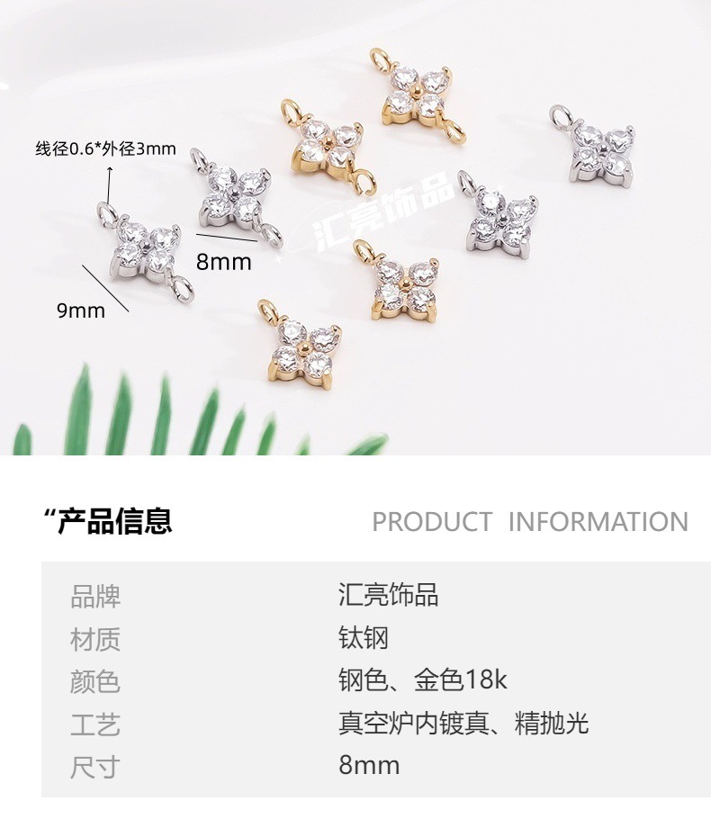 精抛光工厂直销 钛钢锆石四叶草吊坠不锈钢超闪钻坠子diy饰品配件