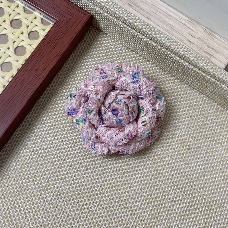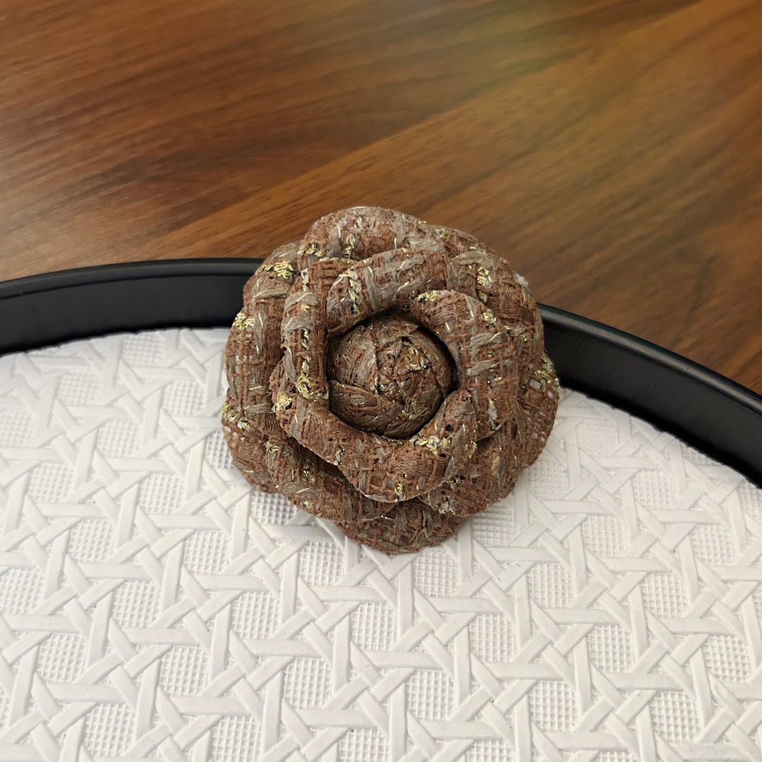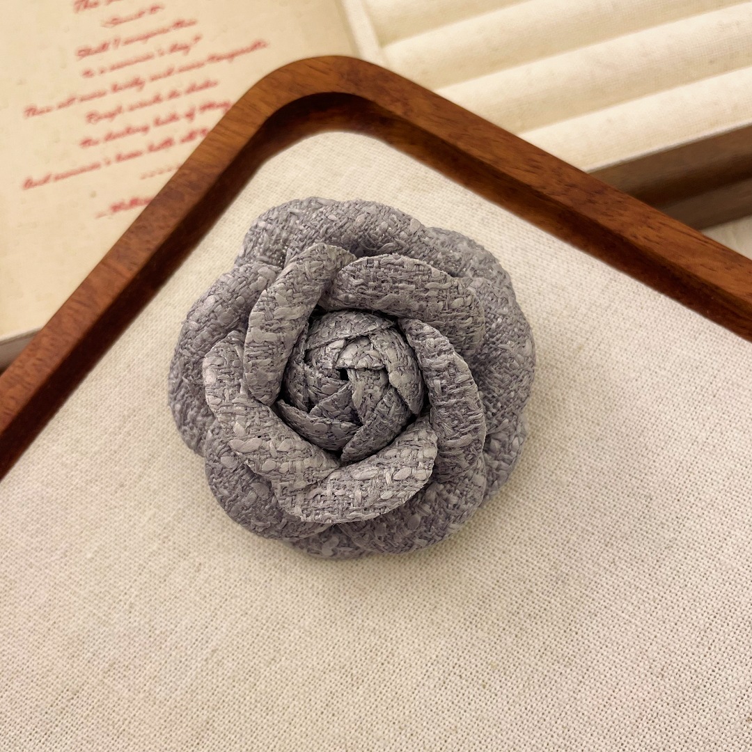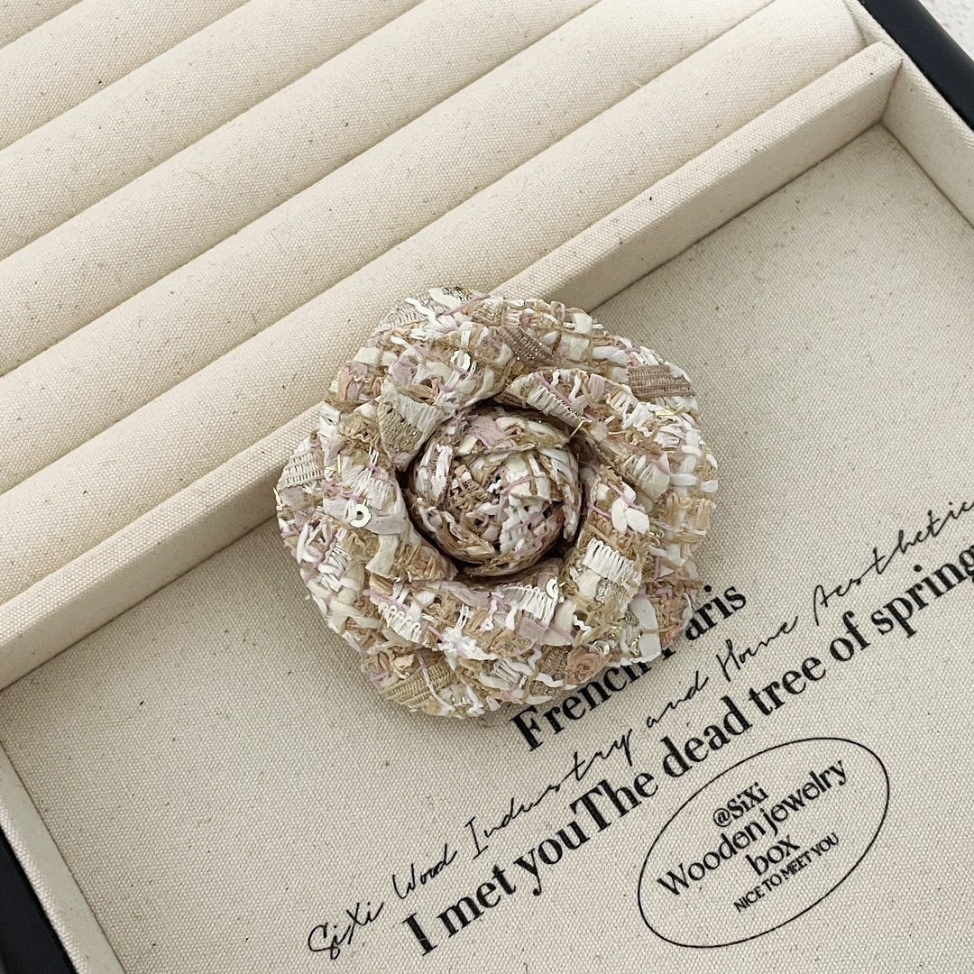 复古经典小香风布艺山茶花胸针女简约气质胸花外套别针领花配饰品