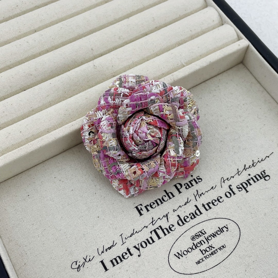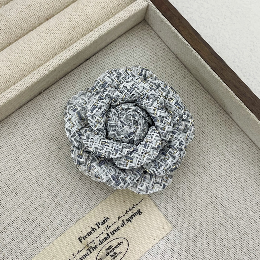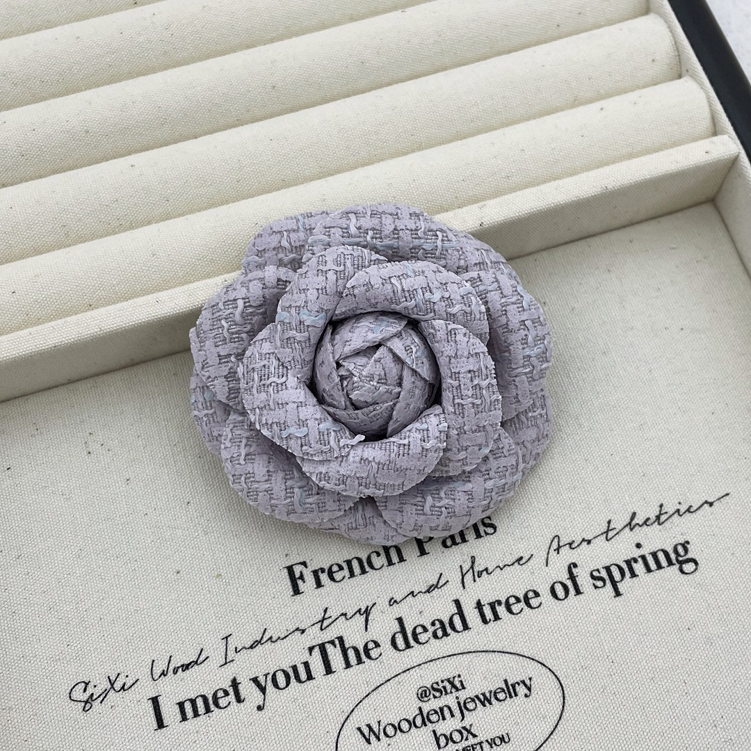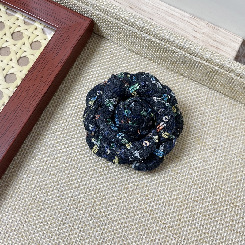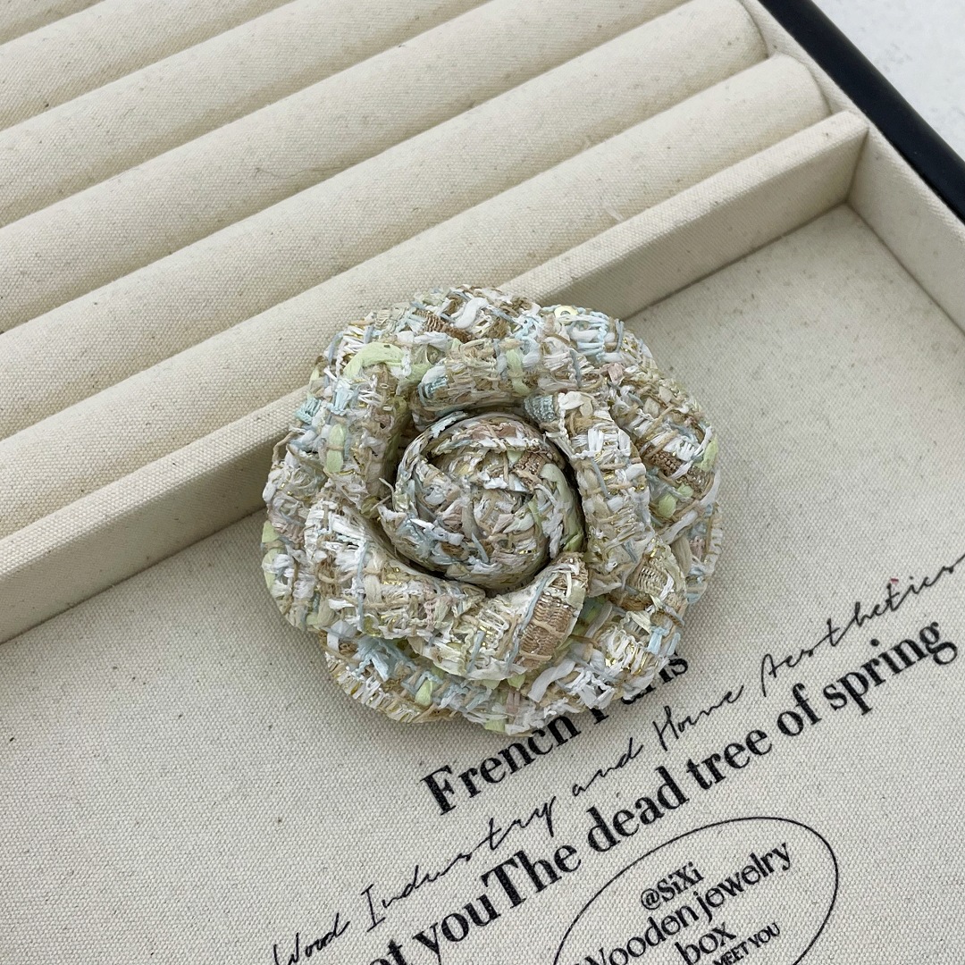 复古经典小香风布艺山茶花胸针女简约气质胸花外套别针领花配饰品