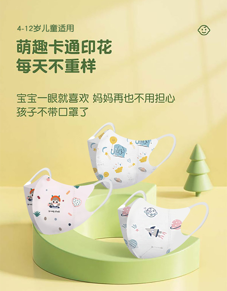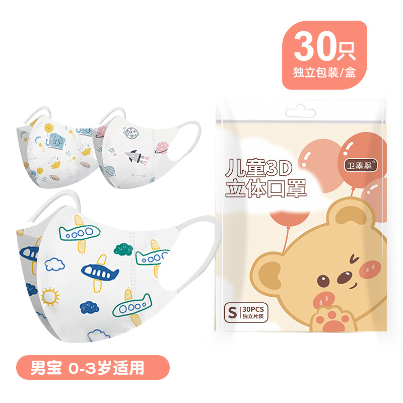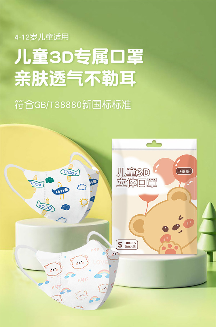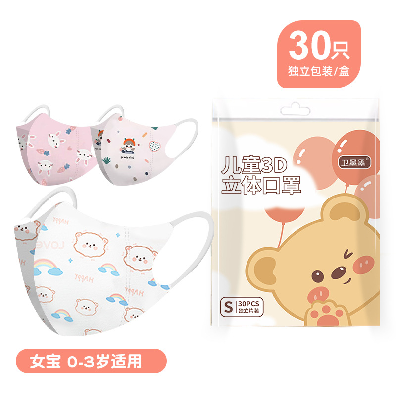 新国标3d立体卡通儿童口罩独立包装高颜值3到6岁婴幼儿一次性口罩