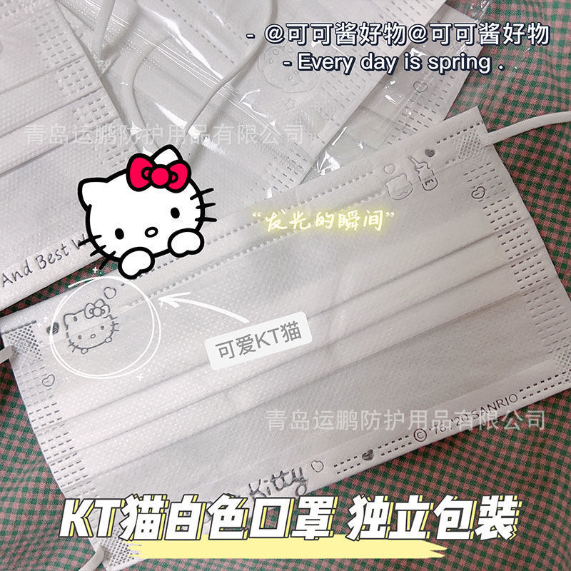 三丽鸥钢印便携纯色口罩少女心可爱高颜值简约学生日用三层潮款