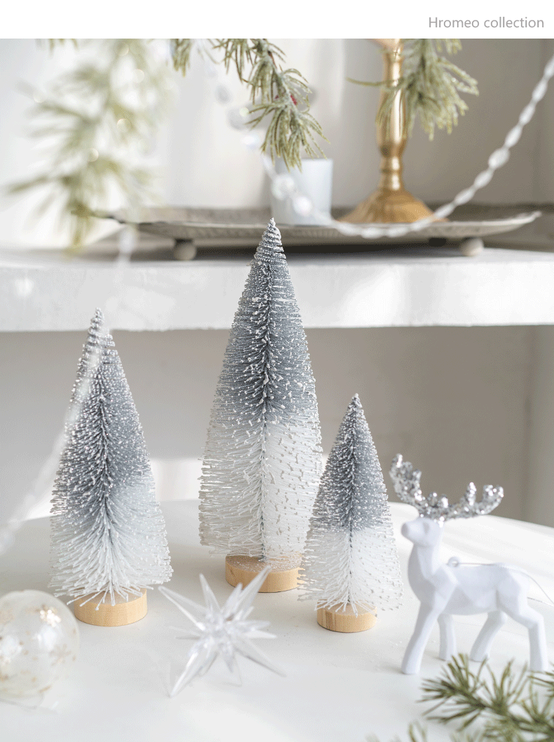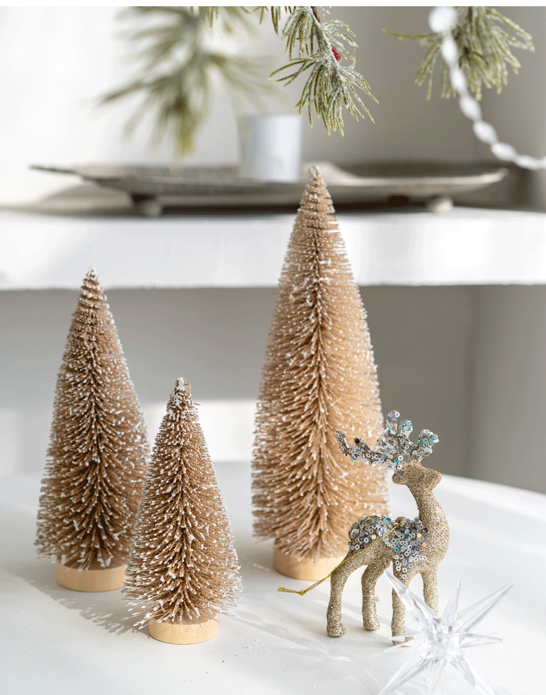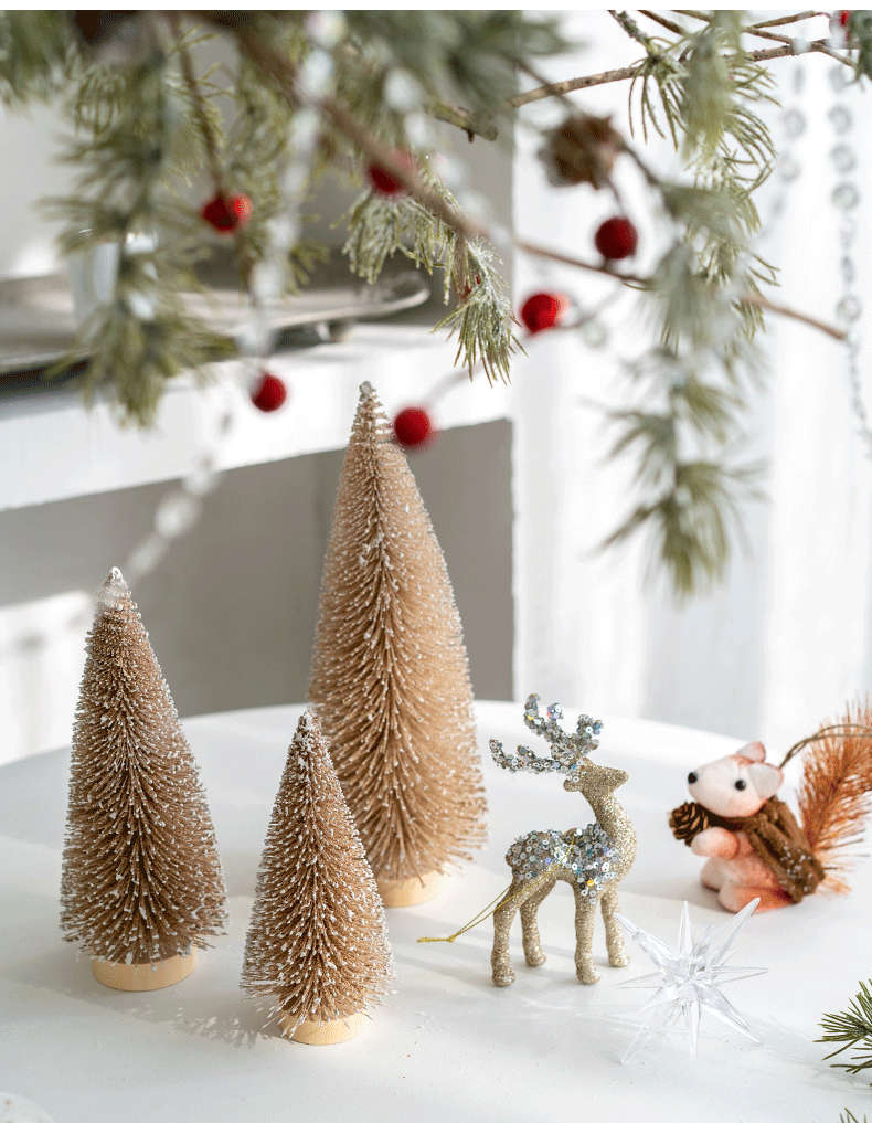 圣诞节装饰迷你圣诞树桌面氛围摆件香槟色银色植绒树ins拍照道具