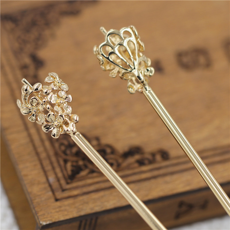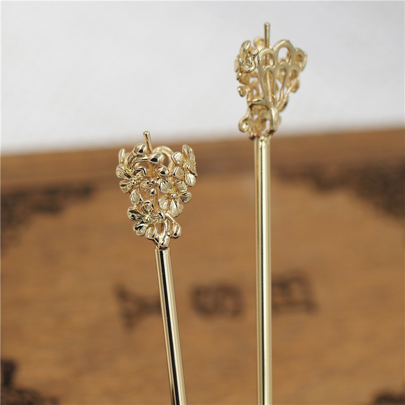 铸铜花苞发簪 diy古风头饰发簪材料配件 150MM