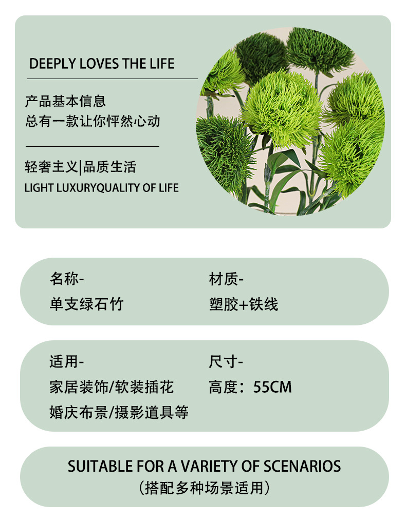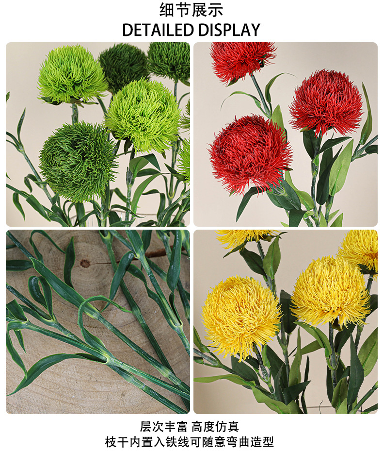手感绿石竹 仿真花绿毛球家居装饰摆放插花摆件摄影道具假花批发