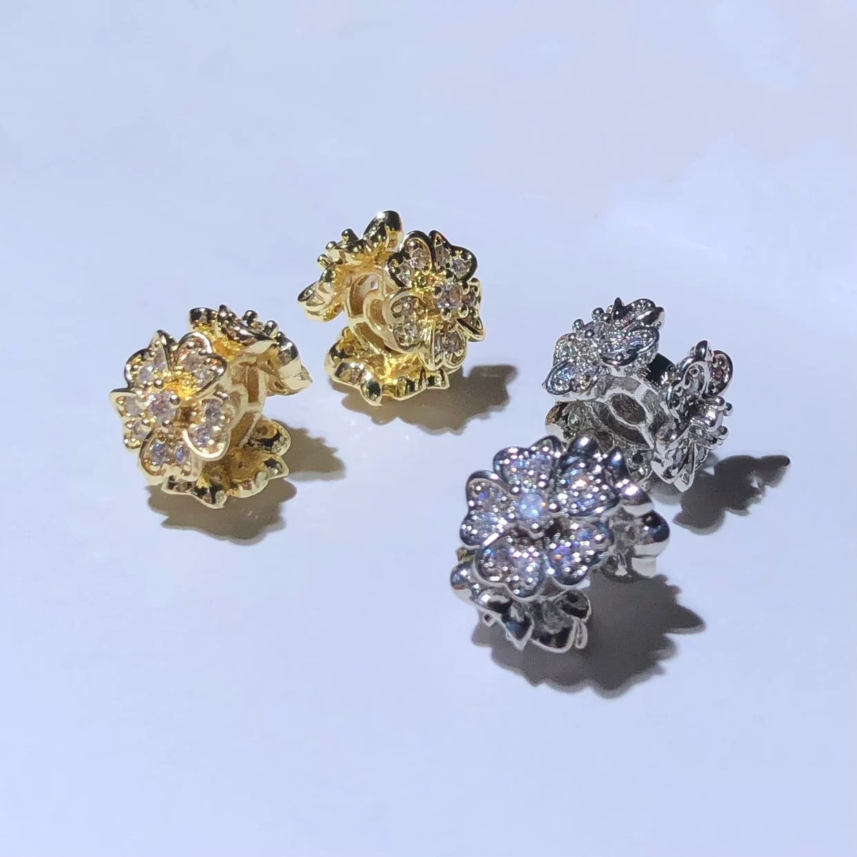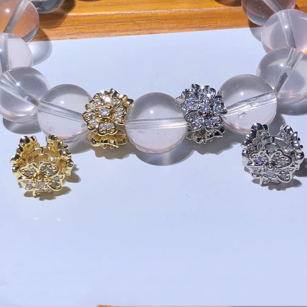 高保色14K包金微镶锆石三面花花隔珠水晶配饰手链项链diy串珠配件