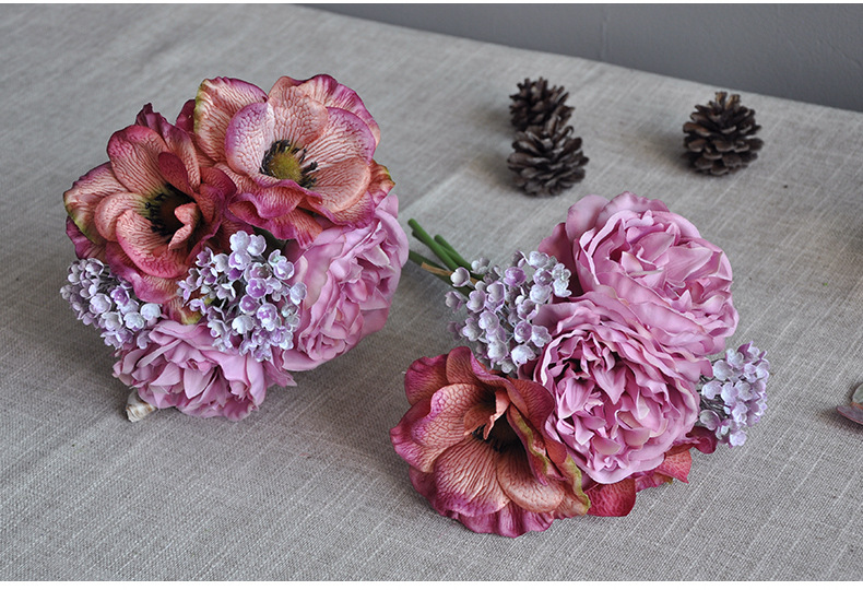 把束牡丹仿真花跨境亚马逊银莲花束假花婚庆摄影婚礼新娘手捧花