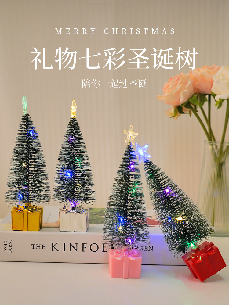 七彩圣诞树小夜灯led电子发光蜡烛灯创意圣诞儿童礼物桌面小摆件