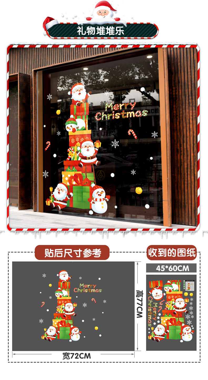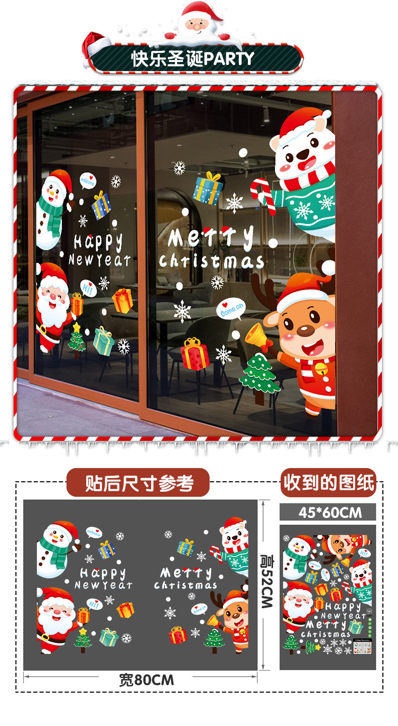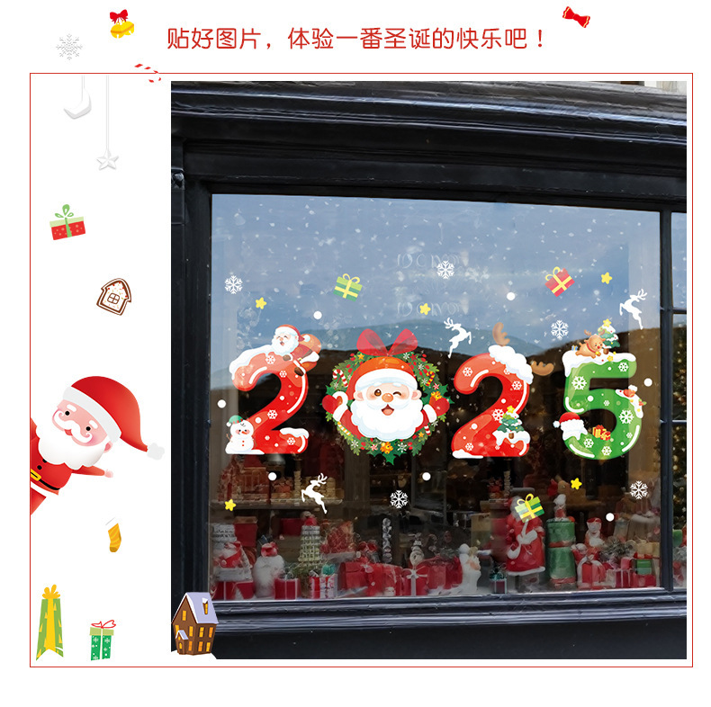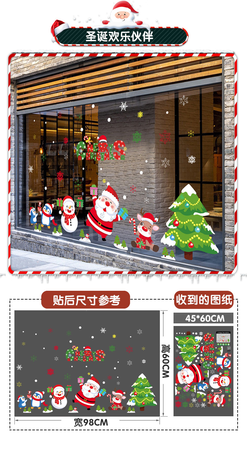 2026圣诞节装饰自粘贴纸店铺橱窗静电玻璃贴门贴场景布置窗花贴画