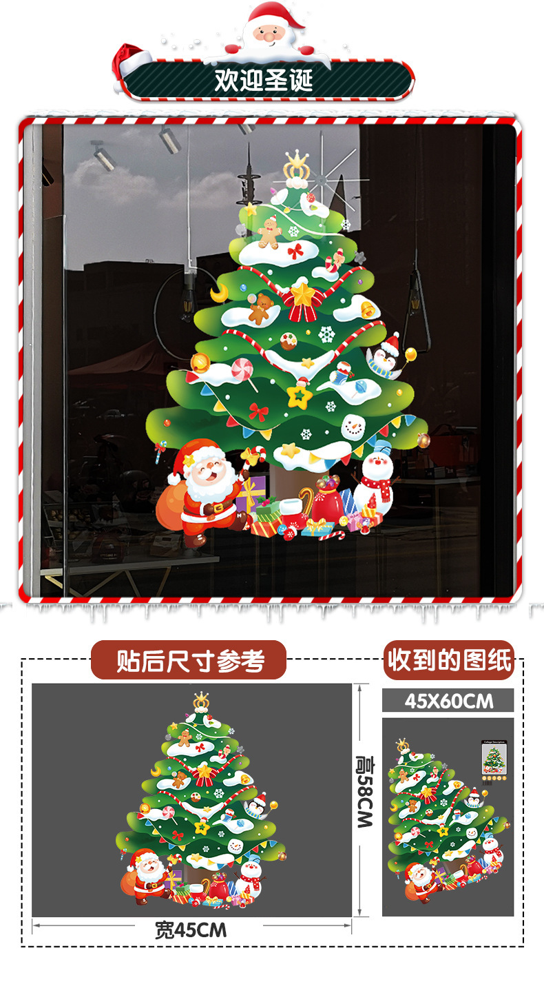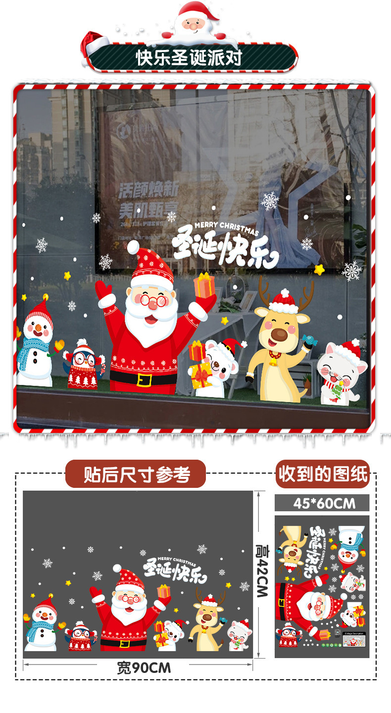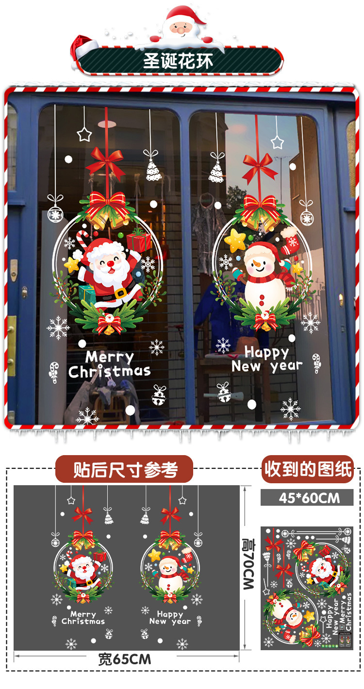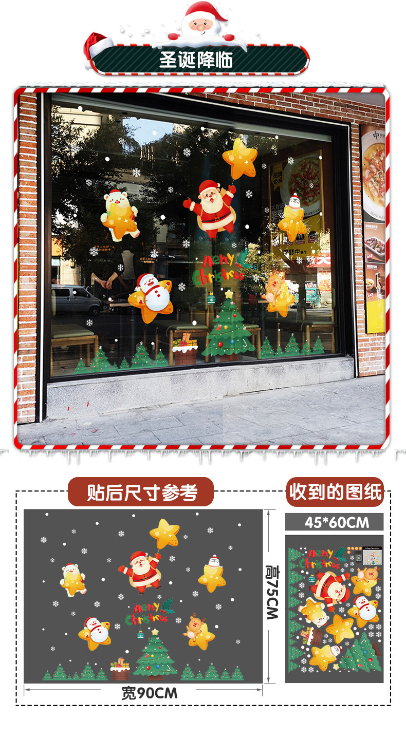 2026圣诞节装饰自粘贴纸店铺橱窗静电玻璃贴门贴场景布置窗花贴画